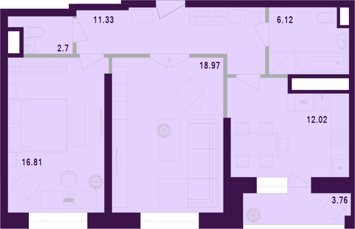 Оптимальная планировка: изолированная кухня (12 м) с лоджией (3,76м) (теплое остекление),  2 просторных сан. узла (6.12м и 2.7м) и 2 жилых комнаты (18.97м и 16,81м). Данная планировка позволит вам создать комфортное пространство для жизни. Закрытый двор. Детская площадка с каруселями и горками, рядом парк для прогулок, центральный бассейн, центральный стадион. НОВЫЙ КРАСИВЫЙ ДОМ:  теплый, 2019 года постройки. По периметру дома установлено видео наблюдение, охрана, домофон, грузовой и пассажирский лифты, свежий ремонт в парадном. В шаговой доступности расположены современное пространство Ликёрка лофт, школа, центральный парк. Звоните!