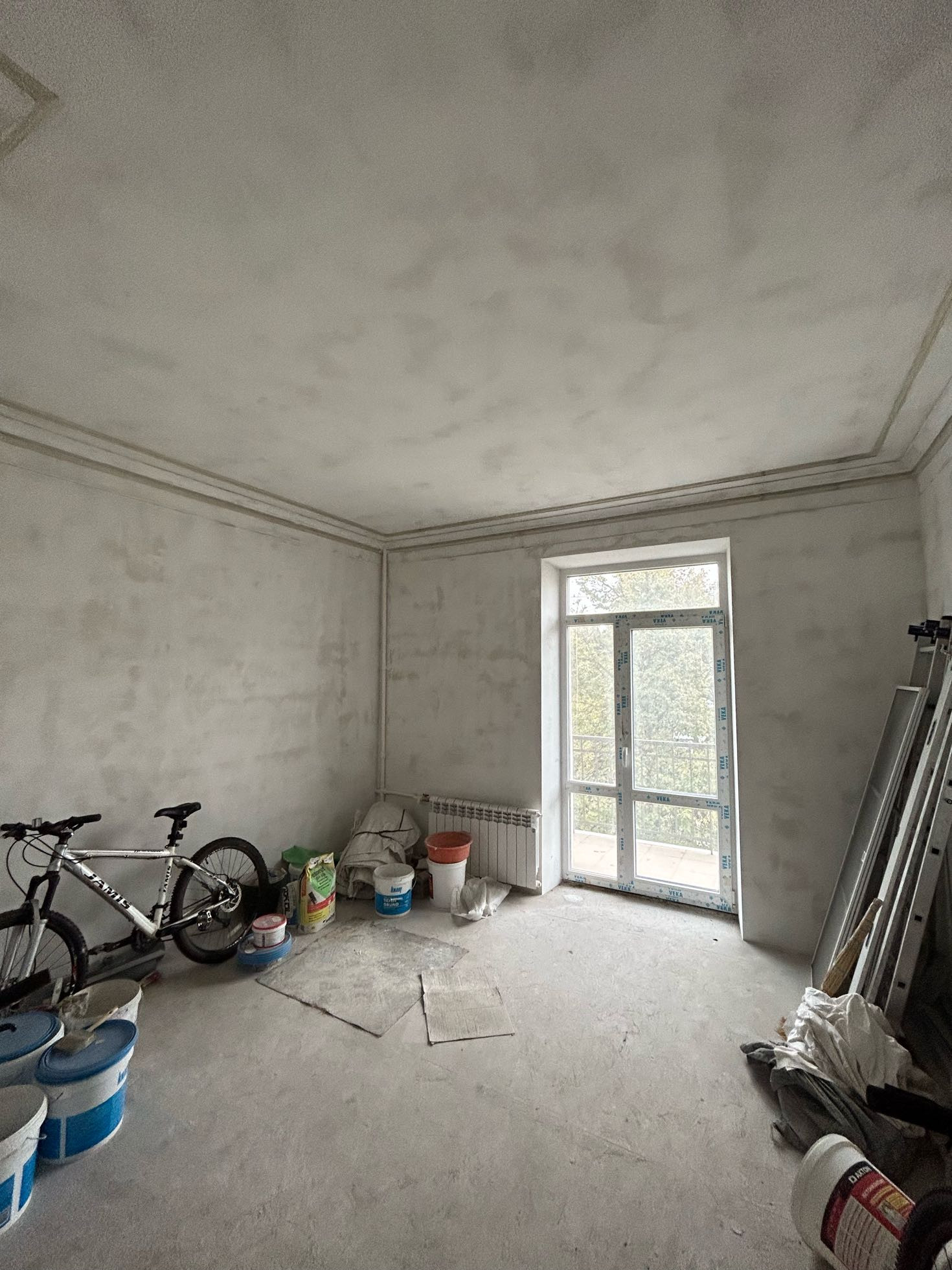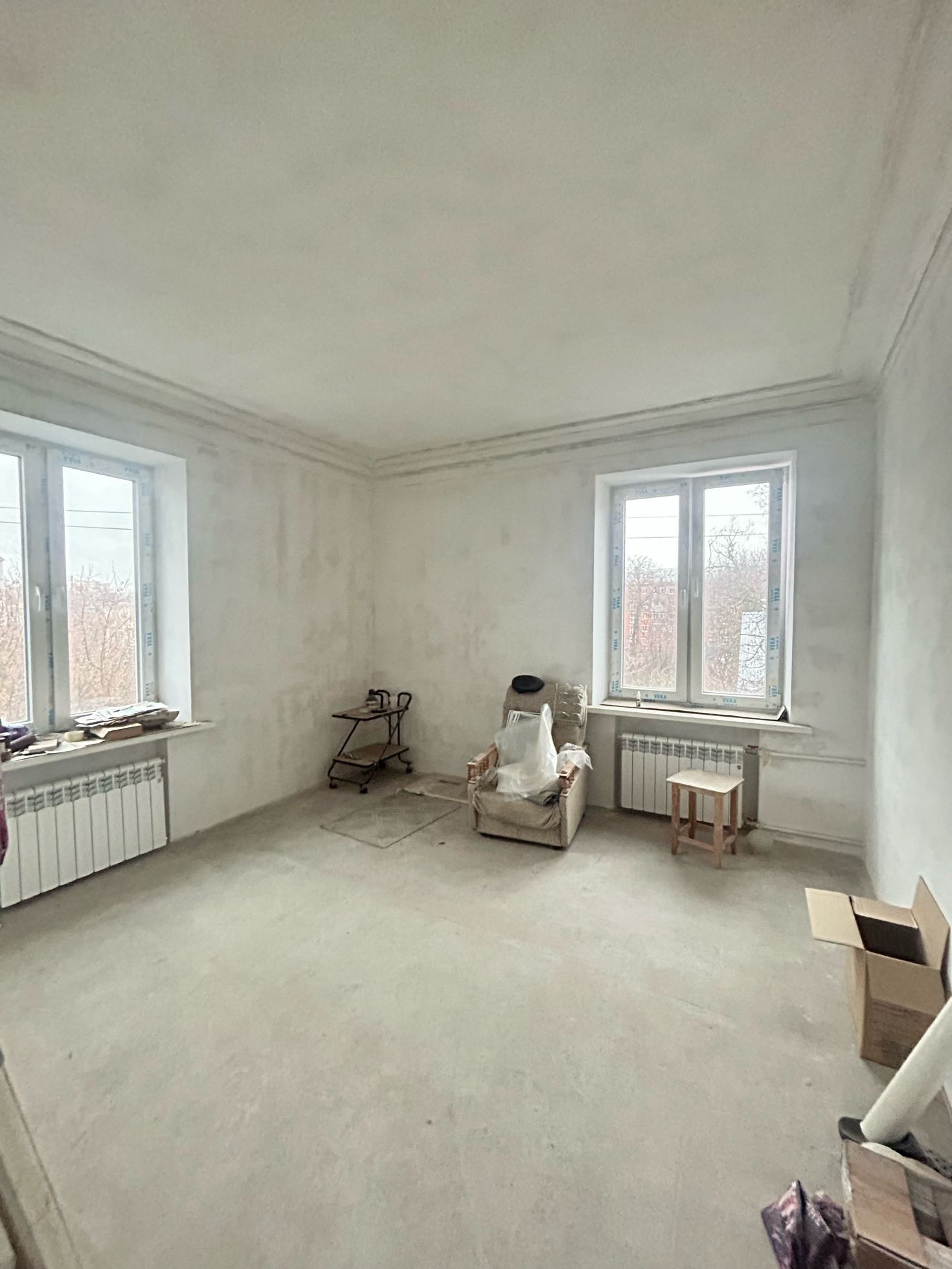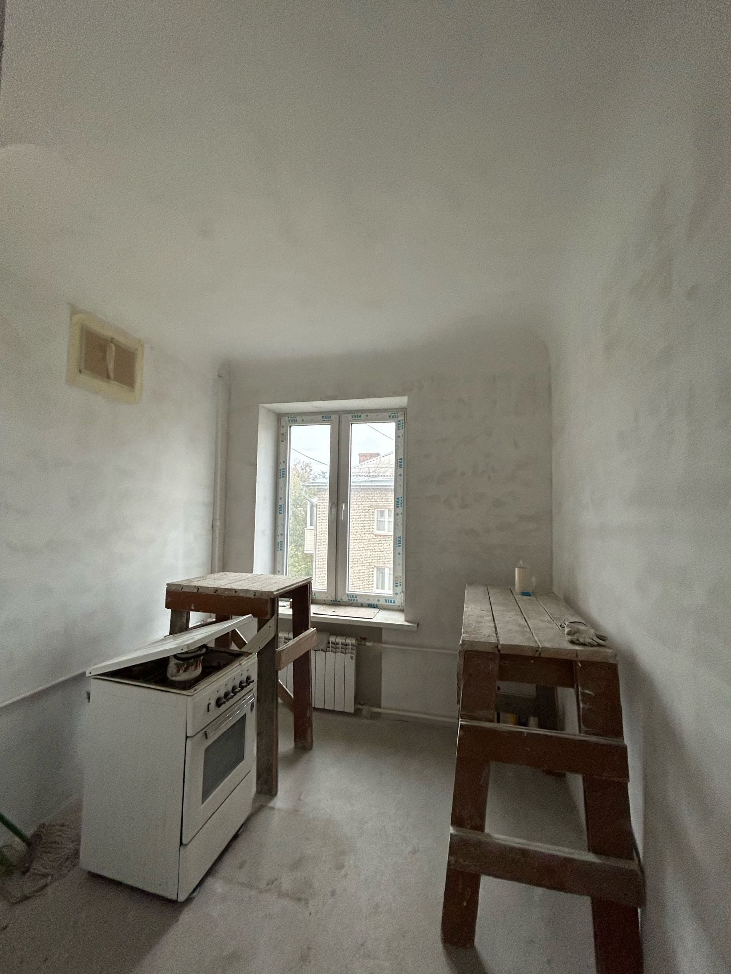 В квартире сделаны все грязные работы: полностью заменены все трубы  на пластиковые, установлены новые окна и балконные панорамные двери фирмы Veka, качественно сделана стяжка пола.