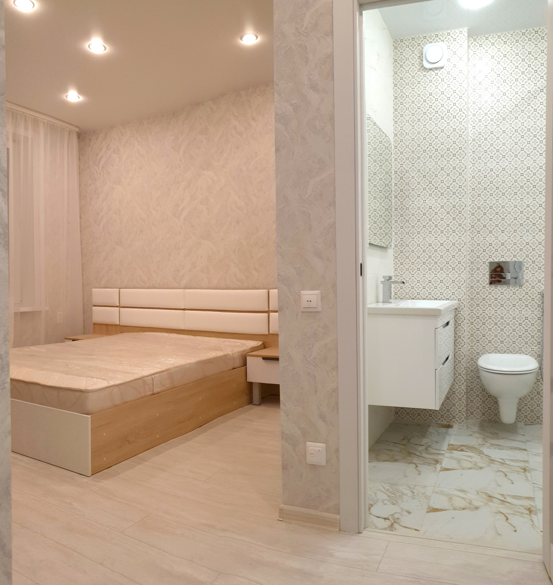 Квартира продается укомплектованной мебелью и техникой. Состояние квартиры позволяет сразу въехать в квартиру и проживать без дополнительных вложений в ремонт и аренду жилья. В квартире качественный ремонт (общая стоимость вложений до повышения цен выше 1,7 миллиона рублей): сделана электрика и освещение, натяжные потолки, уложен влагостойкий ламинат Quick-Step, стены выровнены и отделаны. В мастер-спальне установлена кровать и большой телевизор. Два санузла полностью отделаны плиткой и оборудованы сантехникой и теплыми полами: гостевой санузел оборудован душевой кабиной, санузел мастер-спальни – ванной. В кухне-гостиной установлена мебель, варочная панель, духовка, вытяжка, мойка, телевизор. Имеется стиральная машина, установлены фильтры для воды, кондиционер. Лоджия уже утеплена и присоединена к гостиной. Коммуникации в идеальном состоянии, индивидуальное отопление позволяет начать и закончить отопительный сезон в любое время. Комнаты правильной формы, что удобно при расстановке мебели. В квартире никто не проживал.