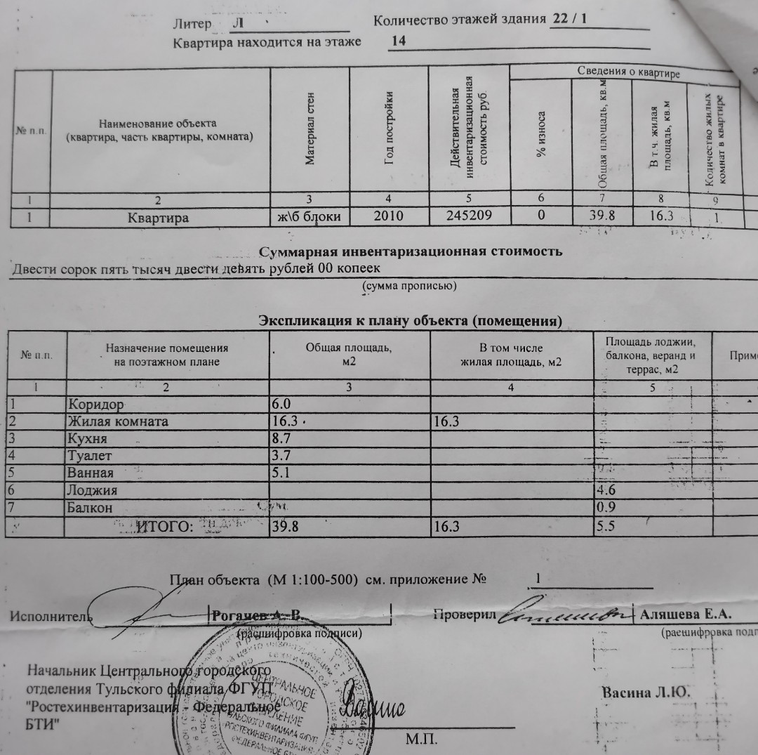 Общая площадь 39.8 м2