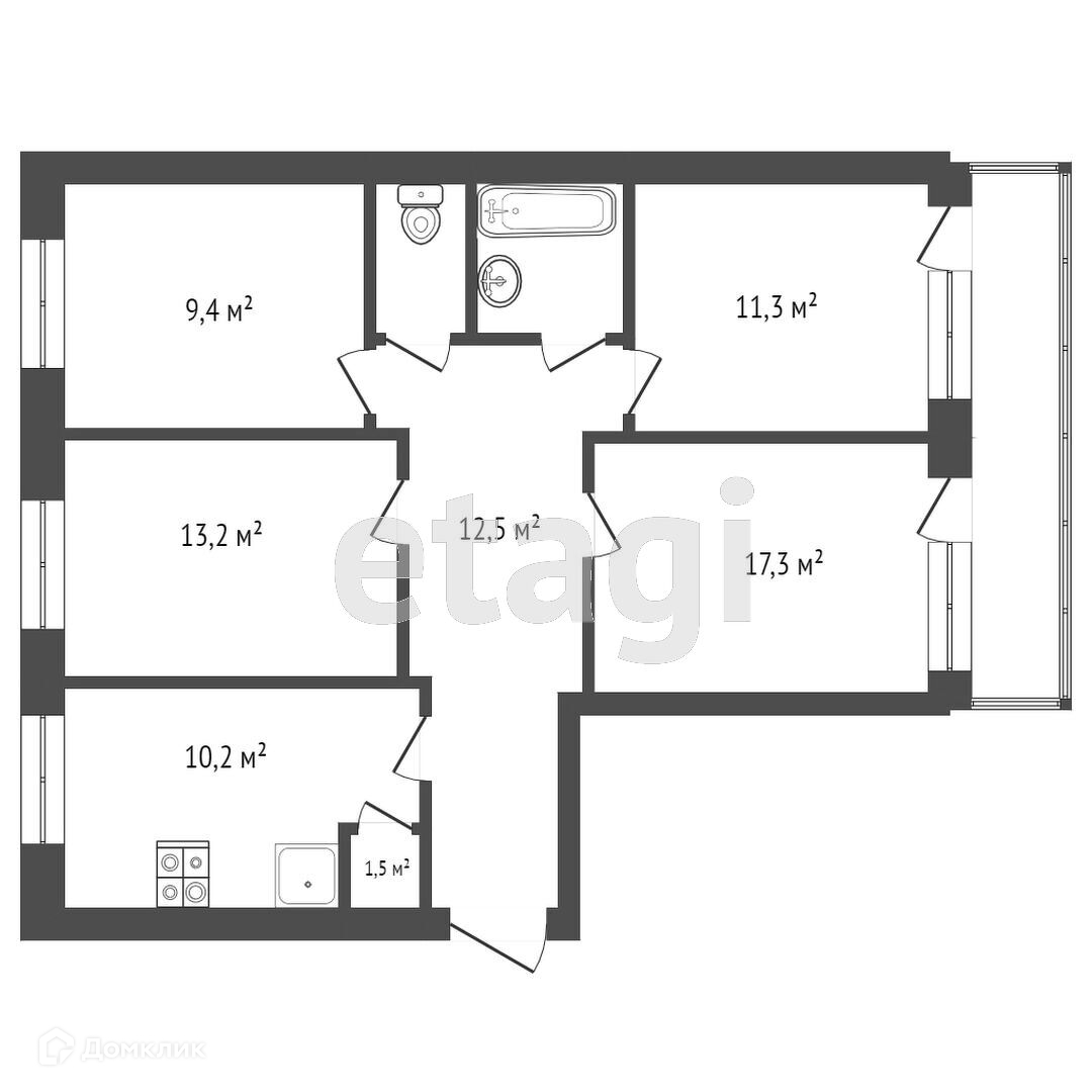 4-комнатная квартира, 79.3 м2, этаж 8 / 9, на продажу в Туле, Пушкинская улица, 30