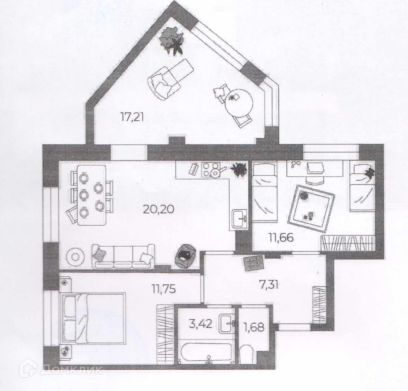 Жилая площадь 41 м2