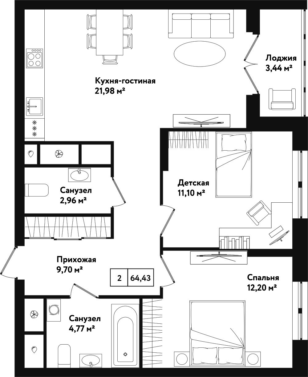 Общая площадь 64.1 м2