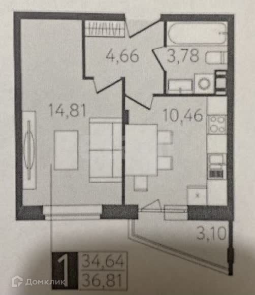 Предлагается к покупке 1 комнатная квартира. Общая площадь 36,81 кв.м; - Просторная кухня 10,46 кв. м.;