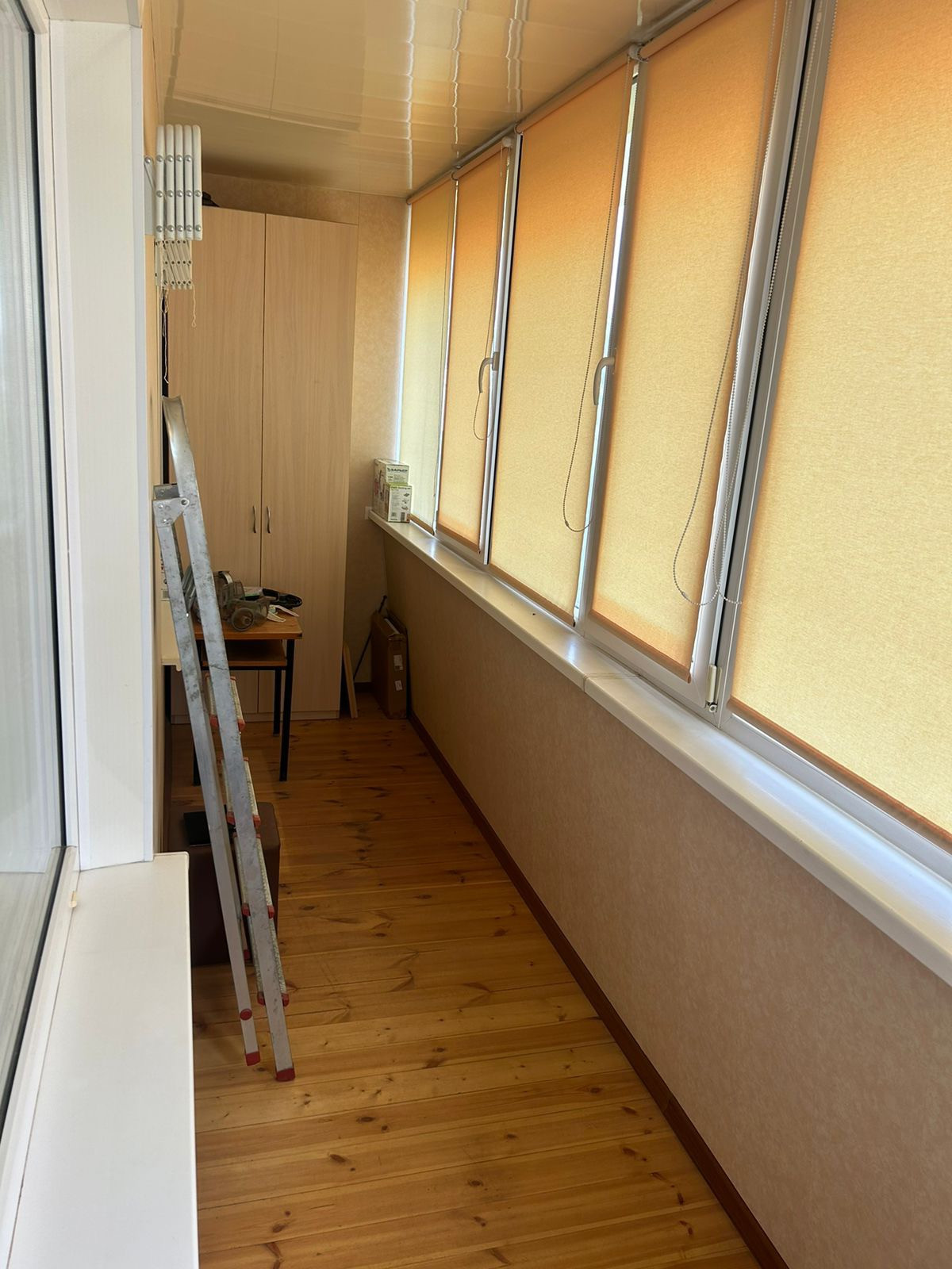 Огромная лоджия 8 м, только после ремонта. Застекление пластиковыми окнами, отделана панелями, на всех окнах жалюзи по размерам.