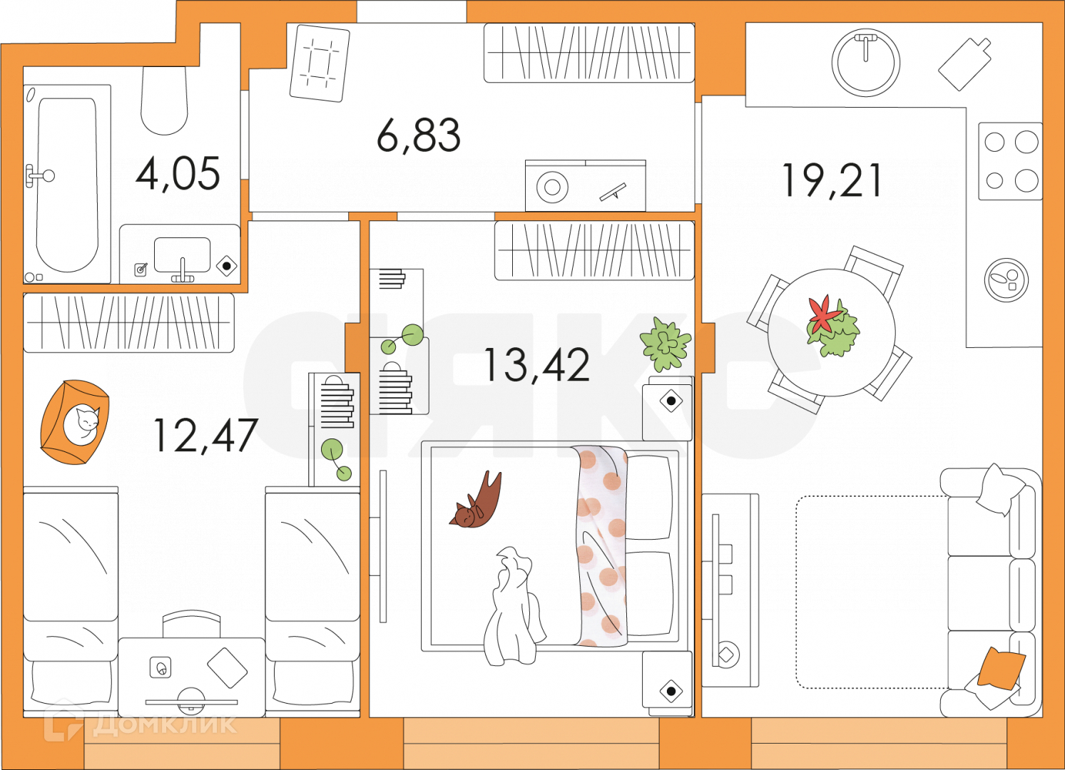 Общая площадь 51.4 м2