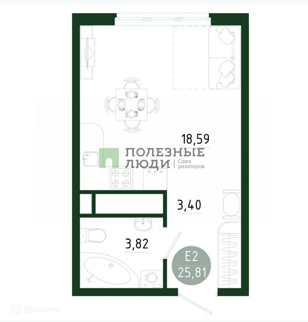 Общая площадь 25.81 м2