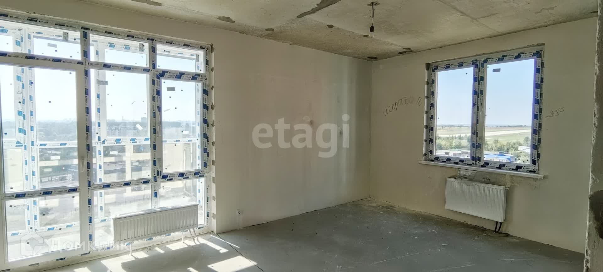 В квартире предчистовая отделка. С соседями общая стена только на кухне (можно сэкономить на шумоизоляции квартиры). Вид из окон на город и во двор. Лоджия с панорамным остеклением.