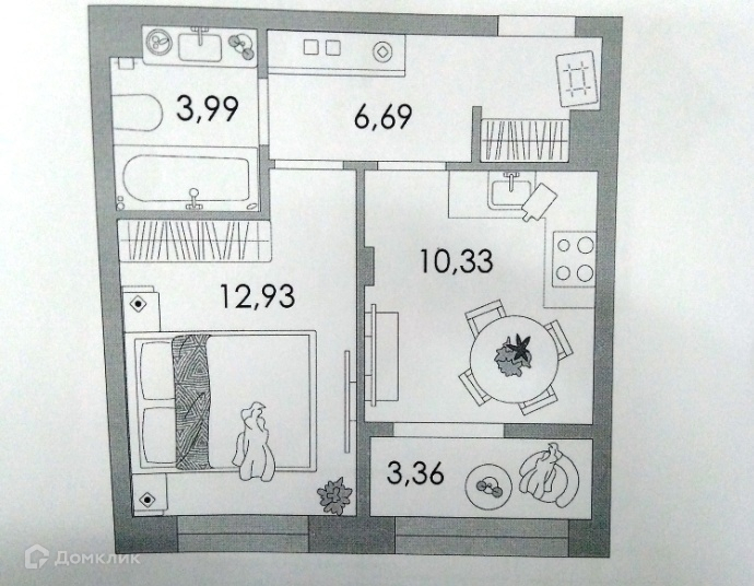 Жилая площадь 12.93 м2