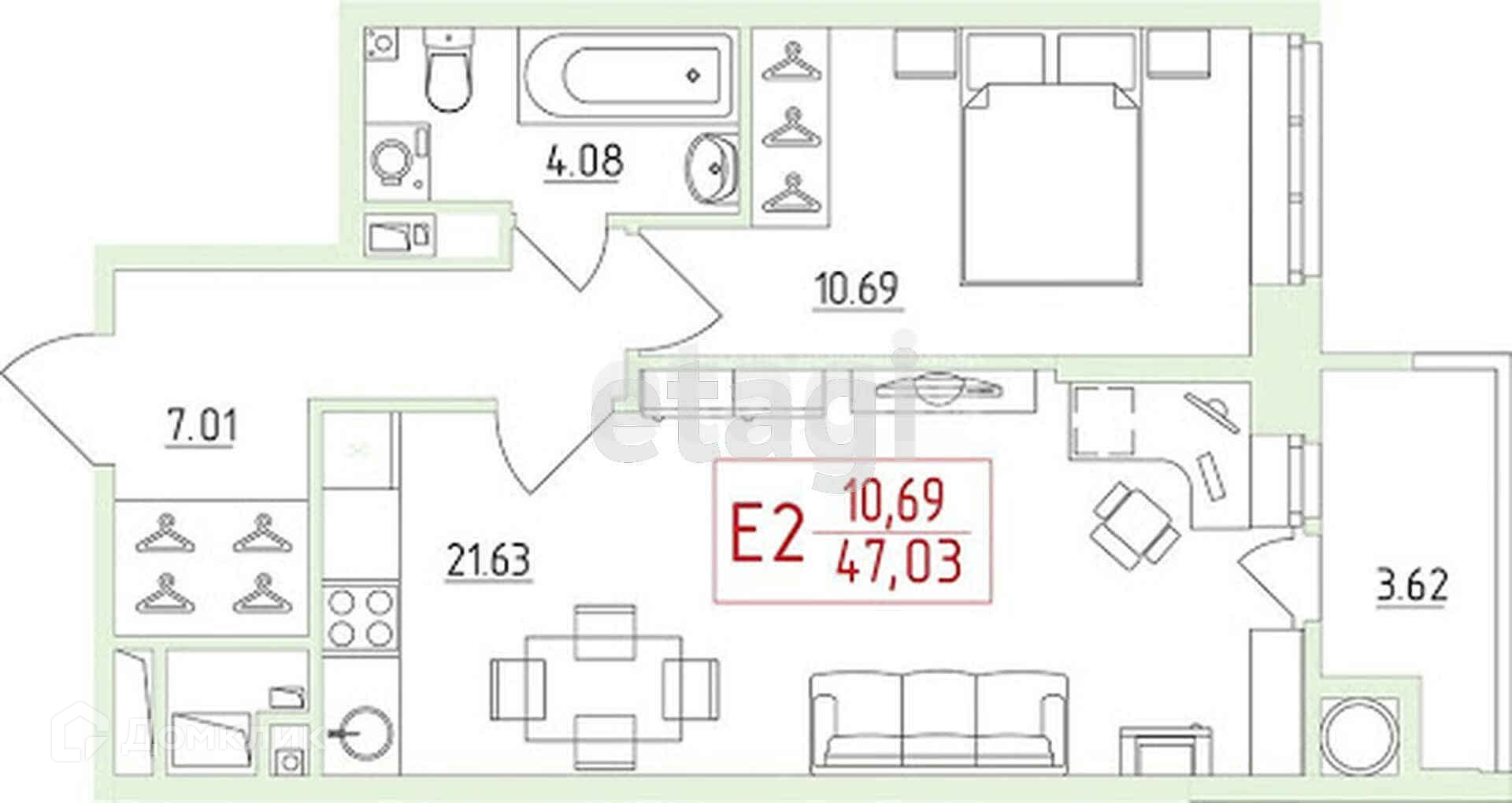 Общая площадь 47 м2