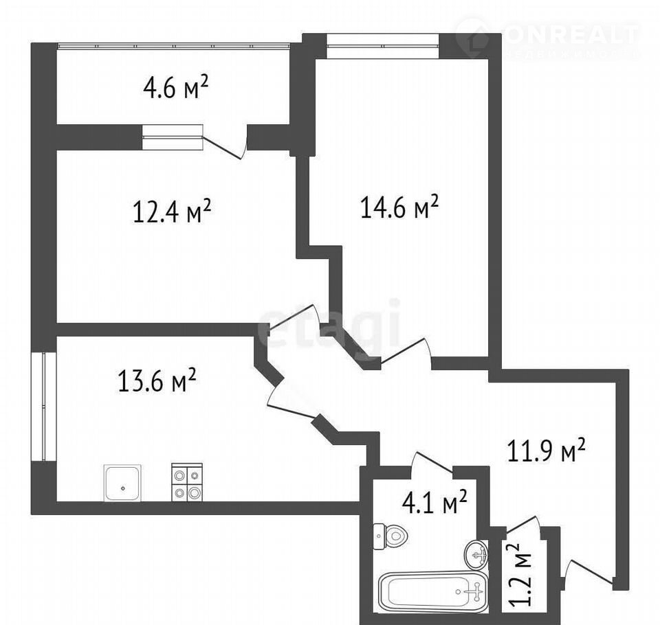 Площадь кухни 12.4 м2