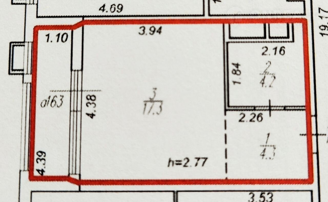 Жилая площадь 17.3 м2
