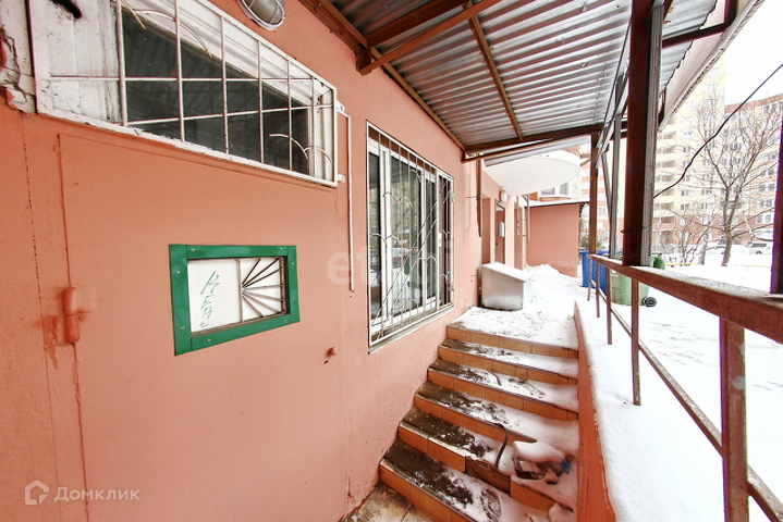 Установлен оформленный вход с вывеской, ступеньками и ограждением. Хорошо подойдет под салон красоты или парикмахерскую, а также под пункты выдачи маркетплейсов или небольшой магазин.
