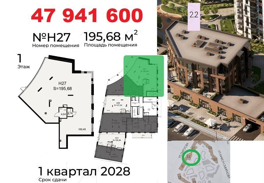 В комплексе есть другие коммерческие помещения площадью от 93,5 кв м до 369 кв м. От 18 млн рублей. Все детали в объявлении.