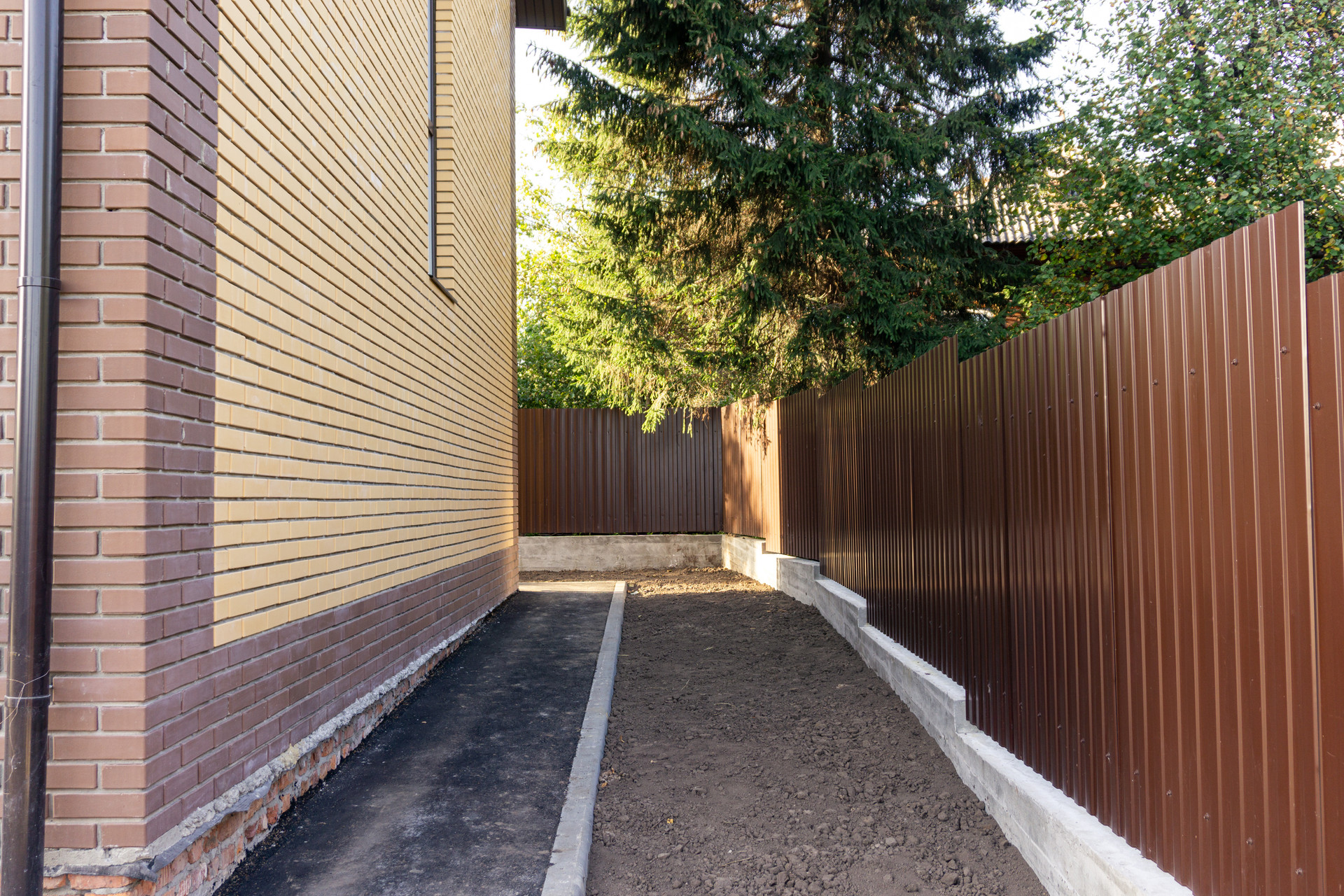 Территория огорожена забором с ленточным фундаметом.