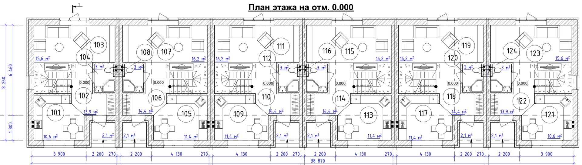 ✅В каждой секции по три этажа, планировка свободная. Возможности планировки с размерами смотрите на планах в фото.