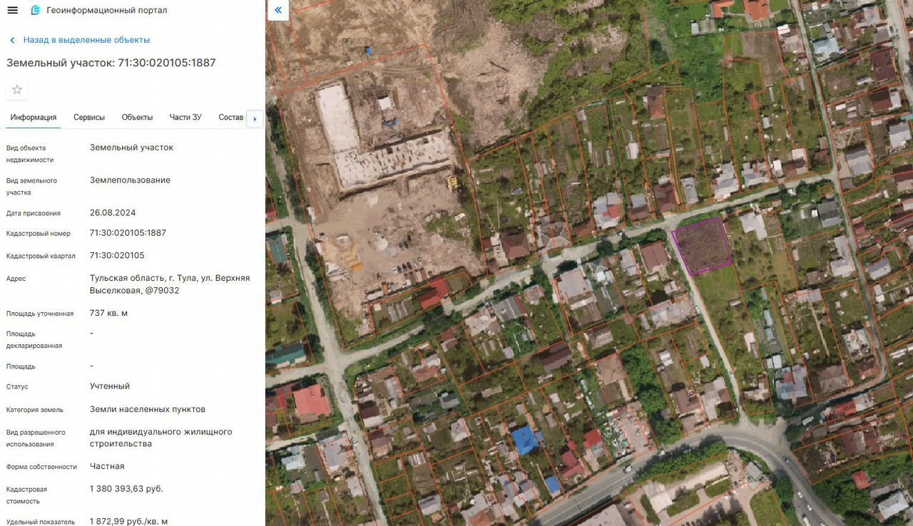 Продается земельный участок с К№71:30:020105:1887, площадью 737 кв.м. Возможен торг