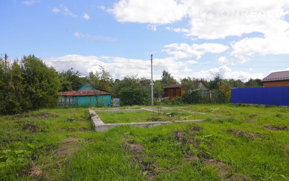На территории участка выложен ленточный фундамент  под дом - 10/7 метров. Глубина 40 см. По периферии фундамента залиты сваи и перегородка. Цена только за участок, покупатель получит экономию денег на работах с фундаментом для своего будущего дома! Разрешение на строительство есть, присвоен адрес дома по ЕГРН!