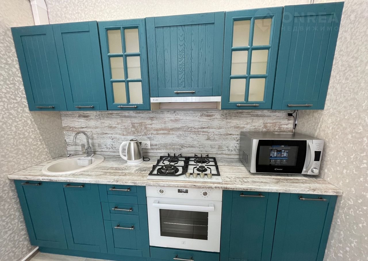 Есть ВСЯ необходимая мебель (диван- кровать, стол, шкафы, стулья) и техника (встроенный кухонный гарнитур, холодильник, чайник, эл. плита, духовка и микроволновка и тд.)