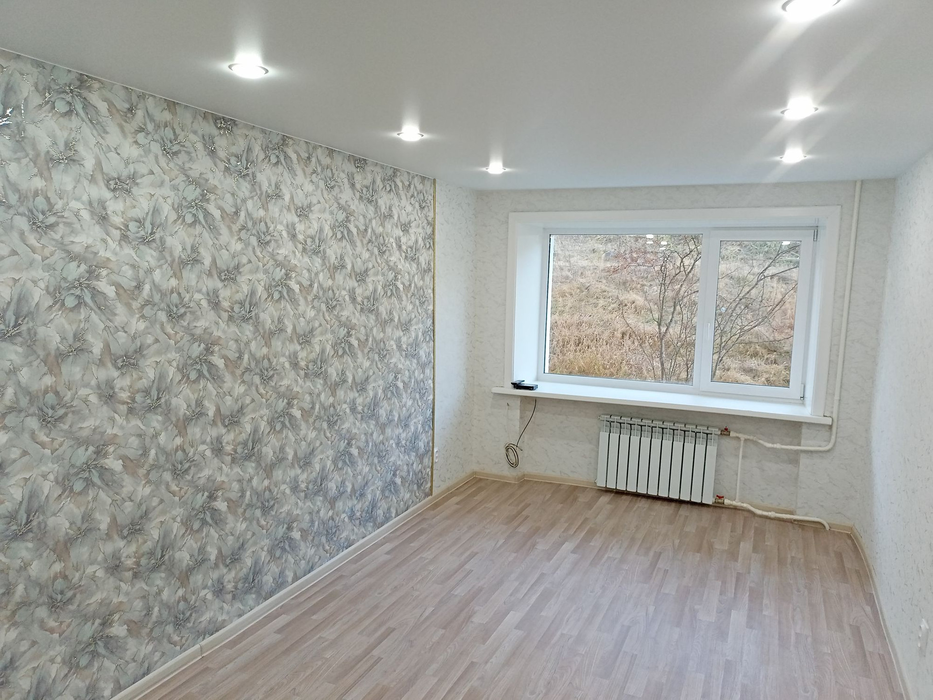 В квартире сделан очень хороший ремонт, в т.ч. поменяна электрика, в каждой комнате натяжные потолки, установлены биметаллические батареи.