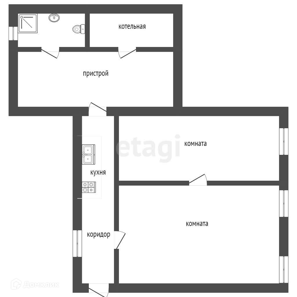 1-этажный дом, 57 м2, на продажу в Туринске, улица Смычка