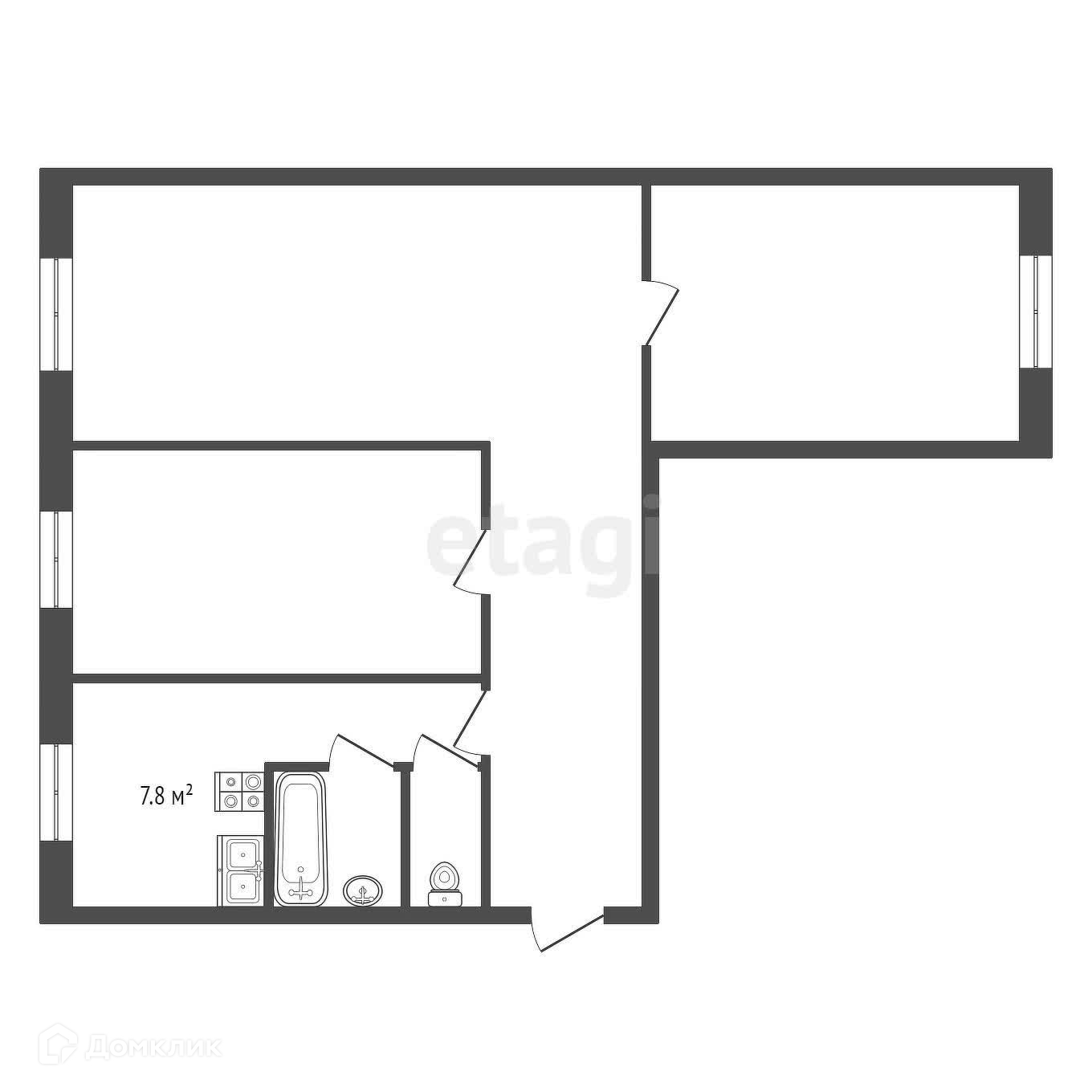 3-комнатная квартира, 65.4 м2, этаж 2 / 3, на продажу в Туринске, Железнодорожная улица, 9