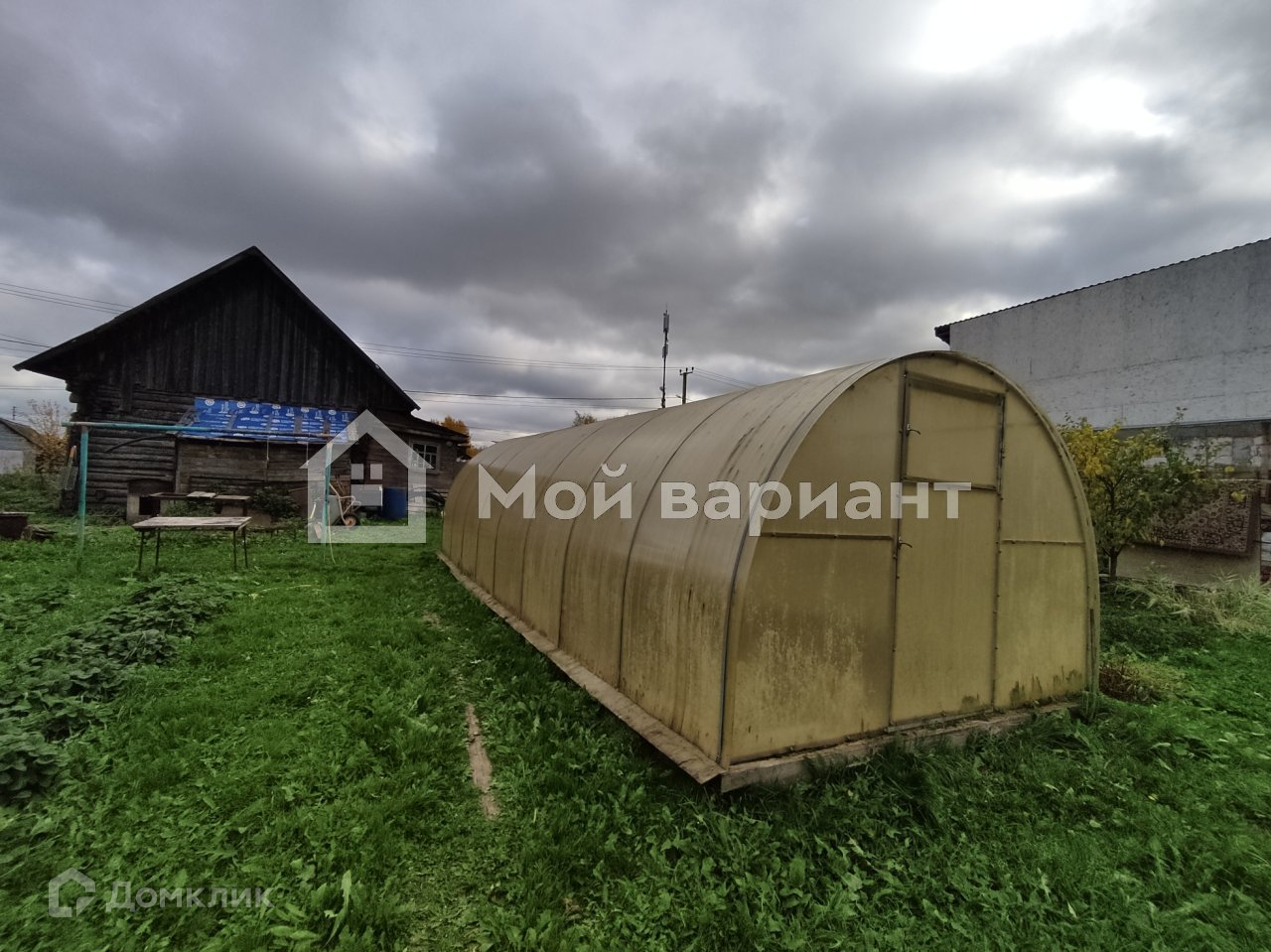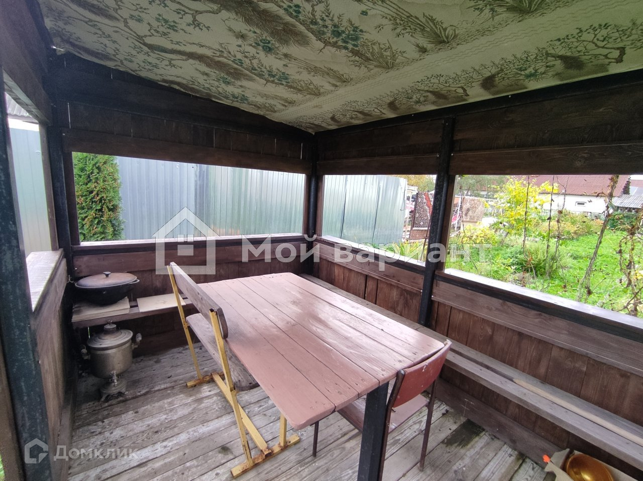 На участке теплица 8 м., беседка, металлическое тёплое помещение 16 кв.м.