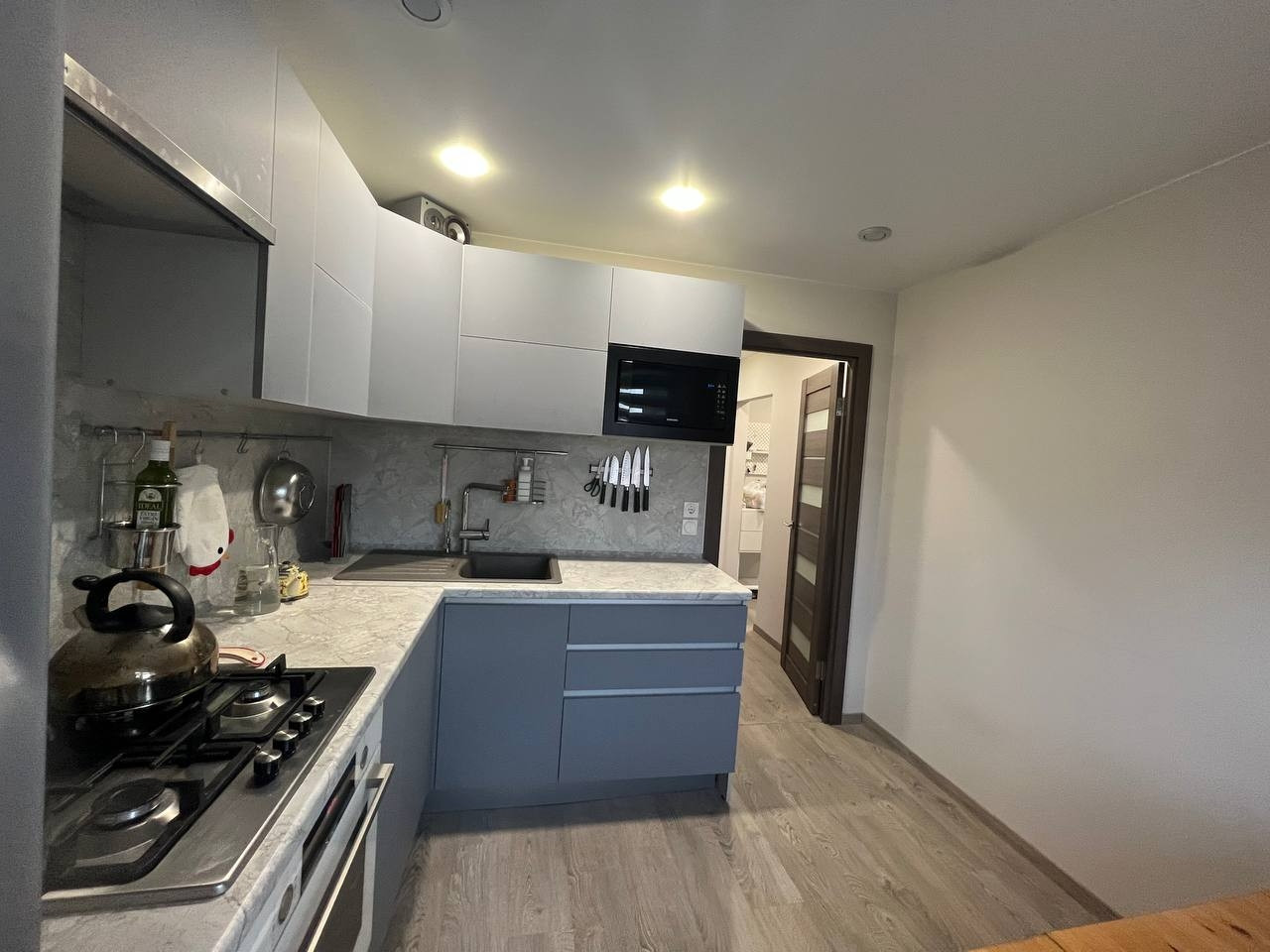 Продам 2-х комнатную квартиру. Сделан капитальный ремонт: новая проводка, стены выведены в ноль под покраску и окрашены итальянской краской на водной основе, полы выведены в один уровень по всей квартире, потолок натяжной цвета сатин. Пластиковые окна по всей квартире (лоджия застеклена). В гостиной(зале) под потолком выведена отдельная линия под кондиционер. Кухня под встройку с акриловыми фасадами. В ванной и на кухне установлены смесители GROHE.