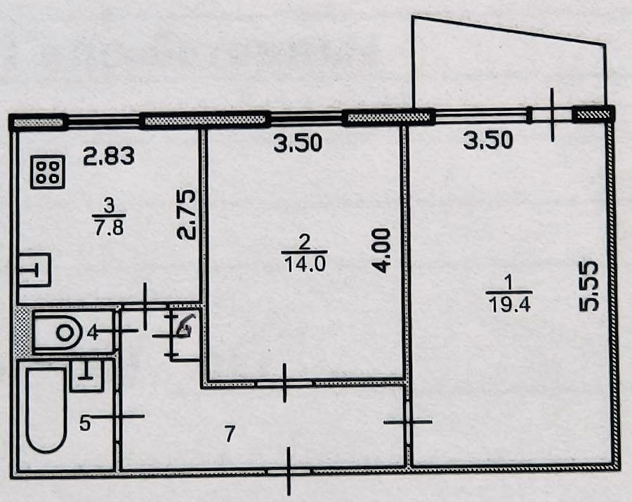 - комнаты рaздeльныe 19,4 кв.м. и 14,0 кв.м.