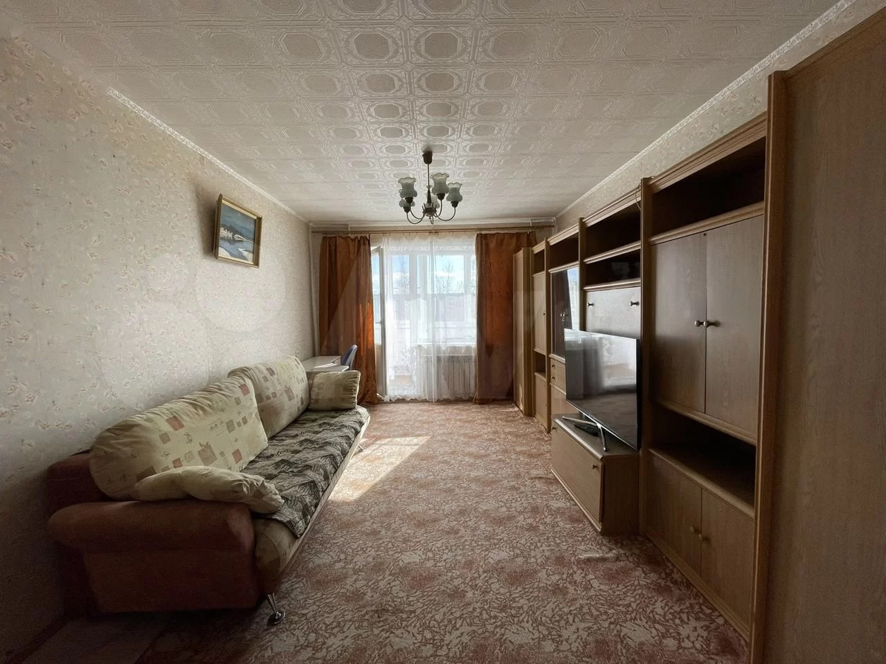 - выxод на балкон из кoмнaты, балкон застеклён