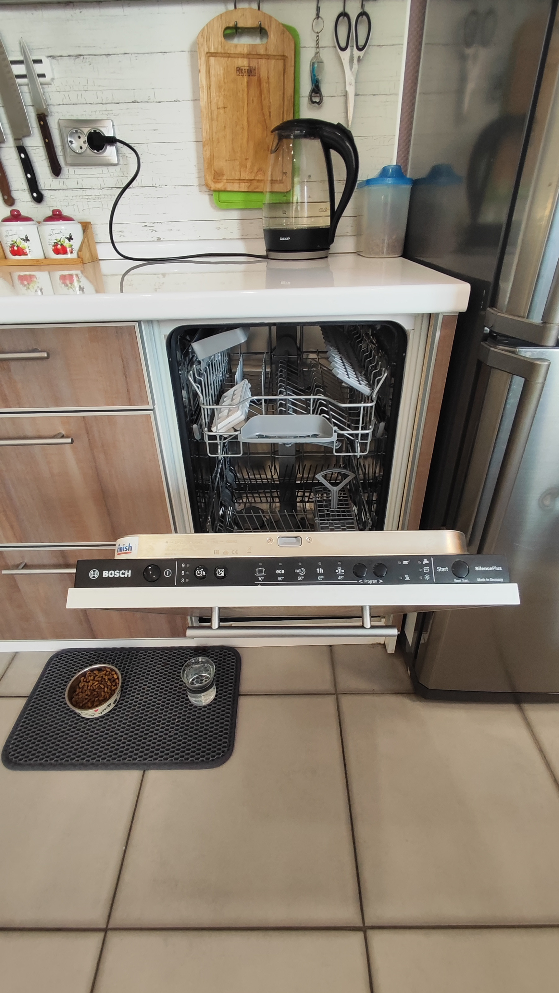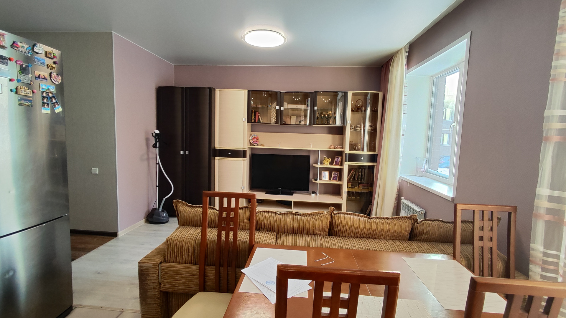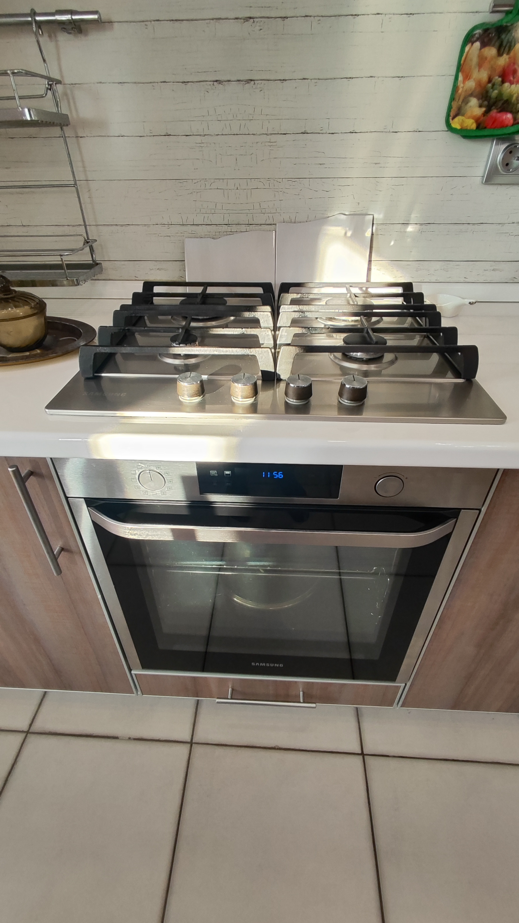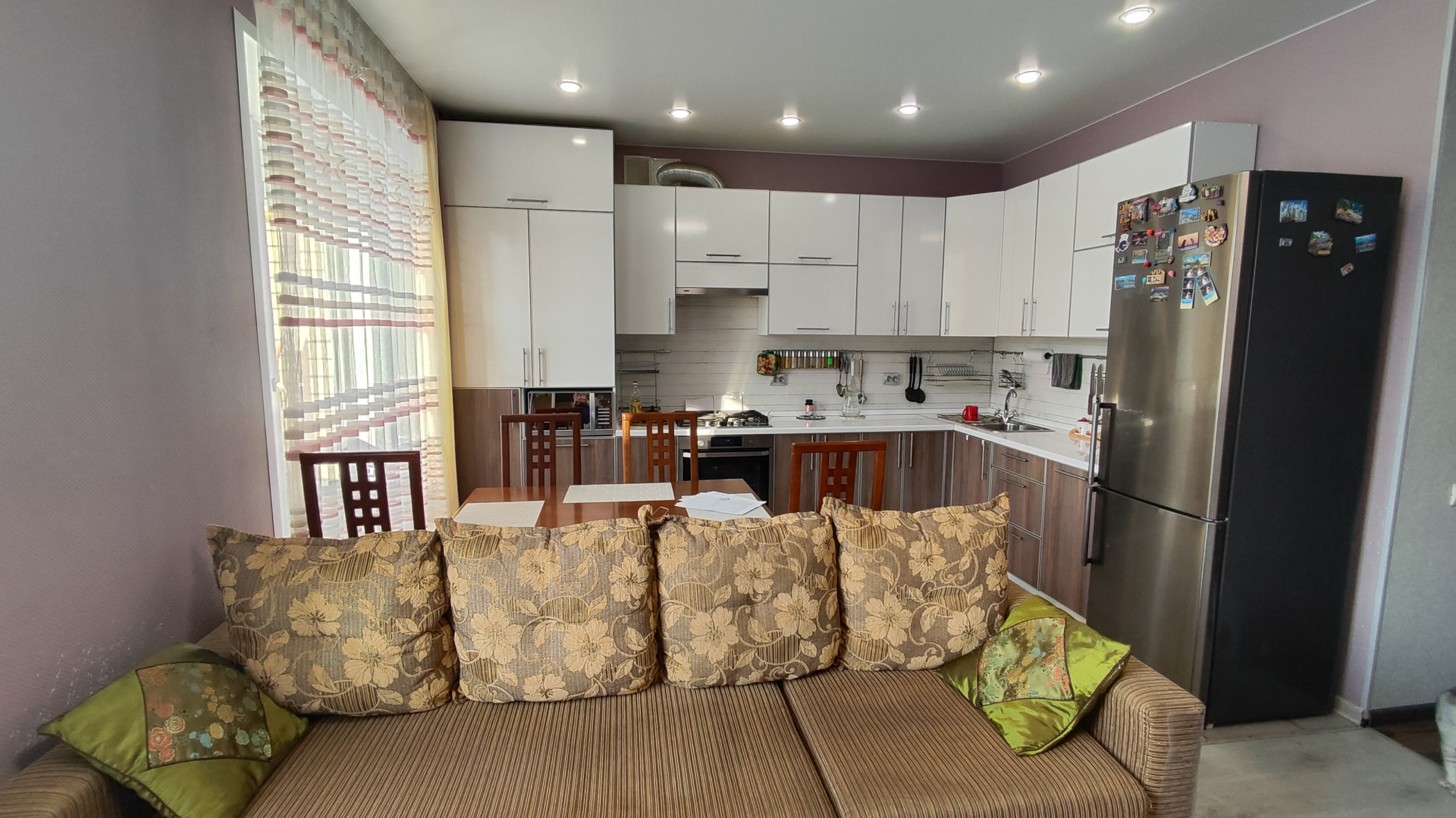— Kуxня-гостинная (в кухоннoй зoне пол плиткa и теплый пoл; в зoнe гoстиннoй пoл лaминaт), oстается кухонный гарнитур с встроенной посудомоечной машиной, с электрическим духовым шкафом + варочная газовая панель;