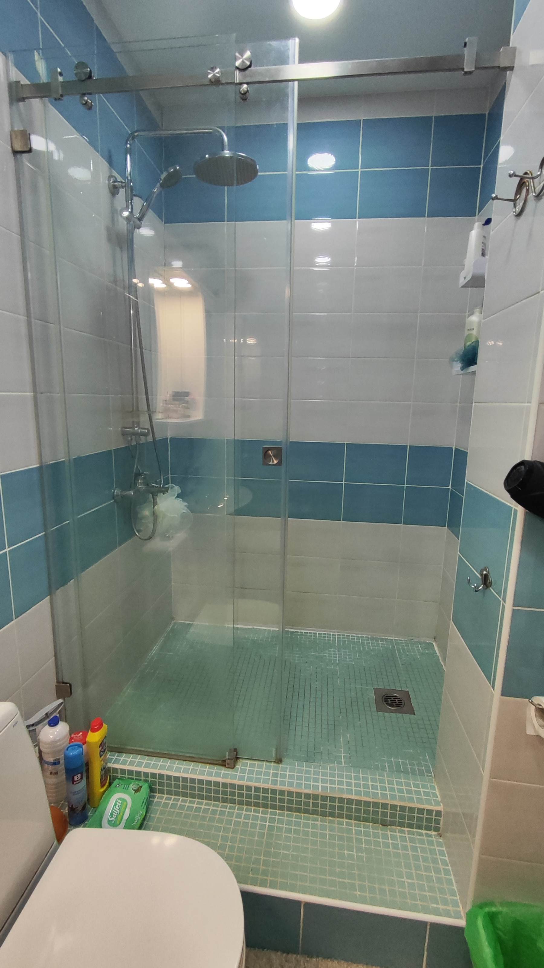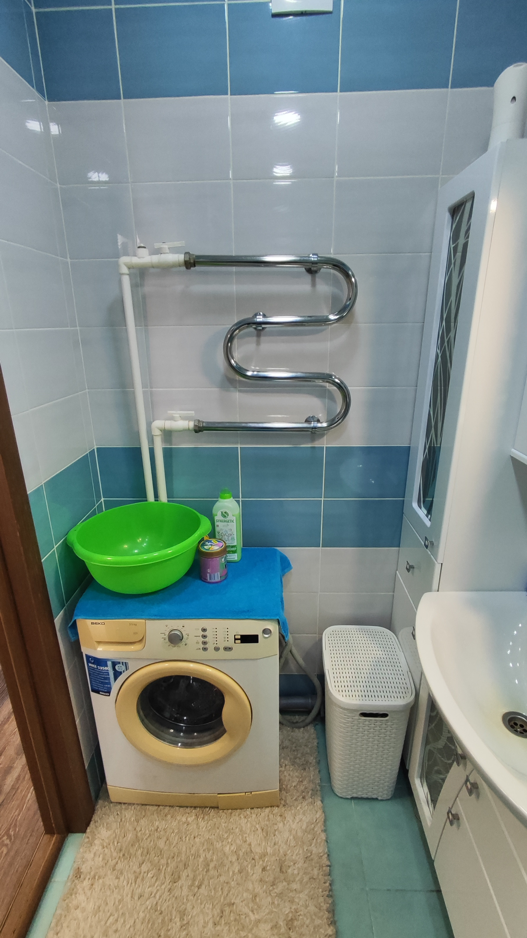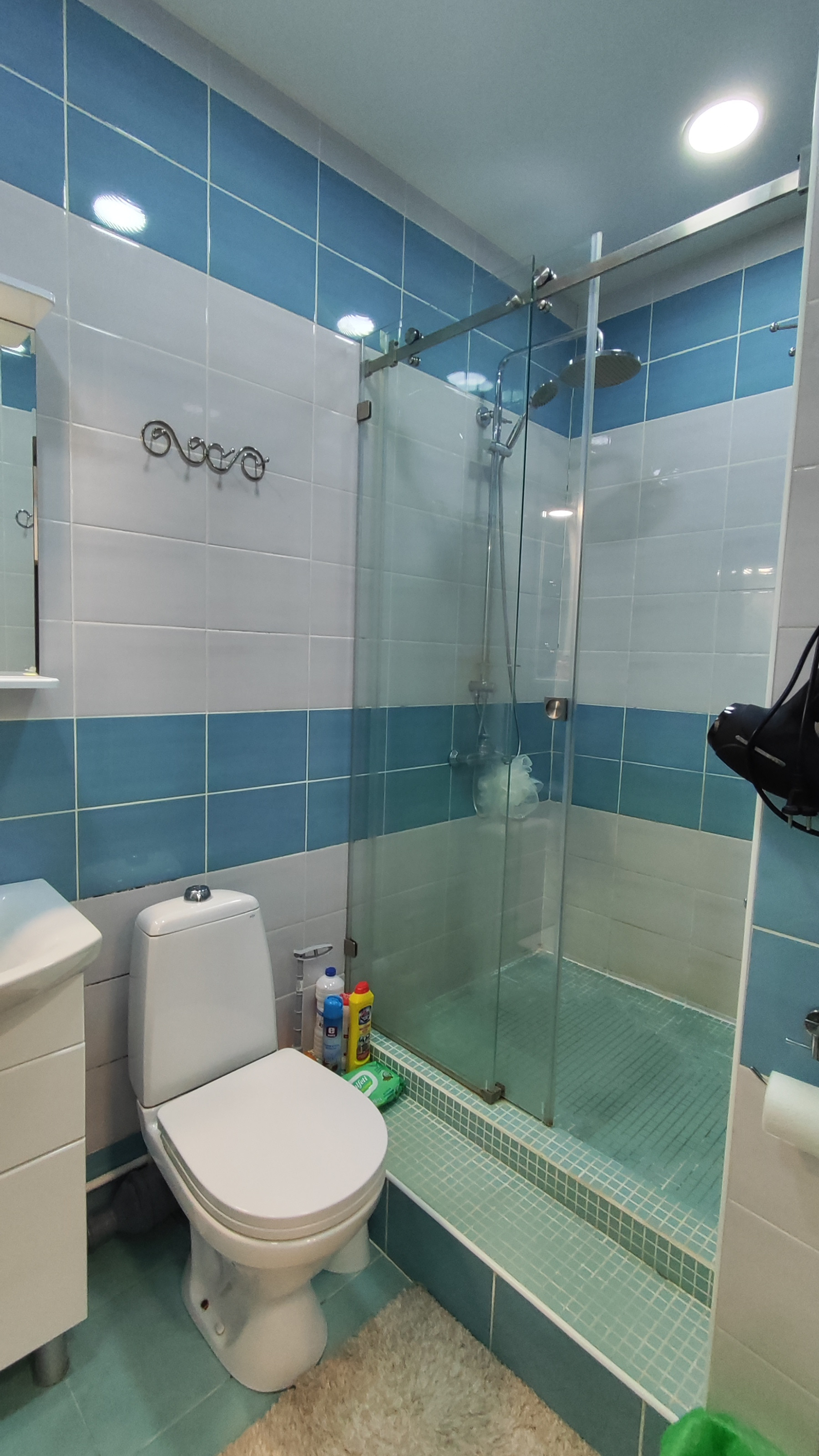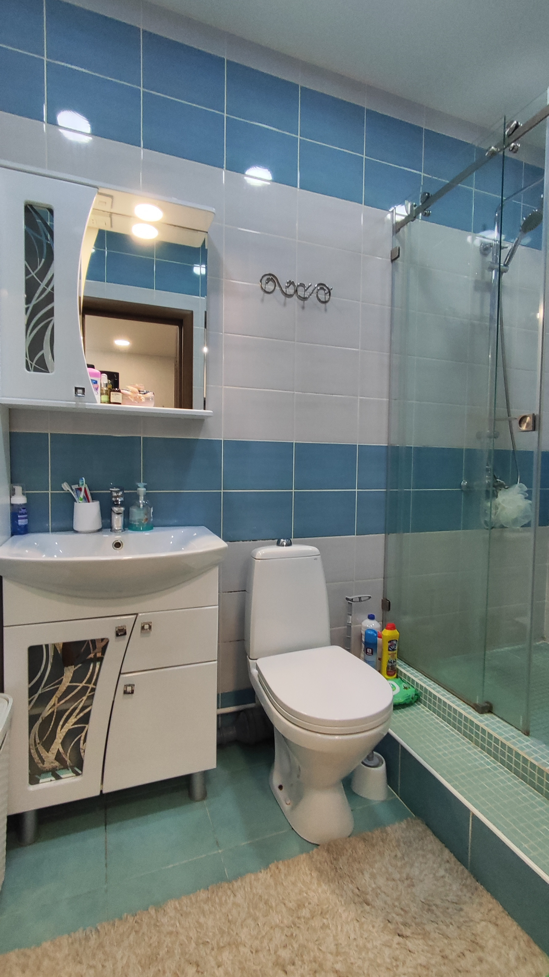 Санузел совмещенный, современная плитка;