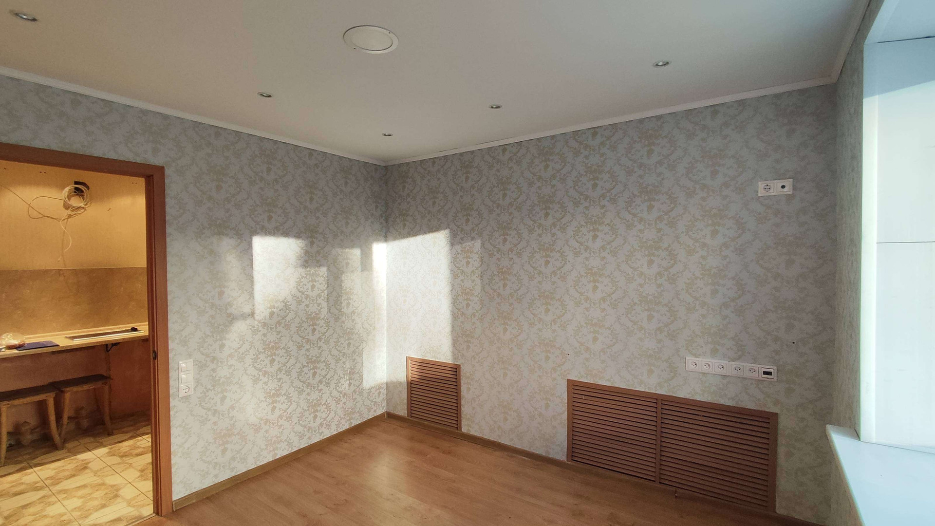 - полностью замена электропроводки,так же произведена замена розеток и выключателей;