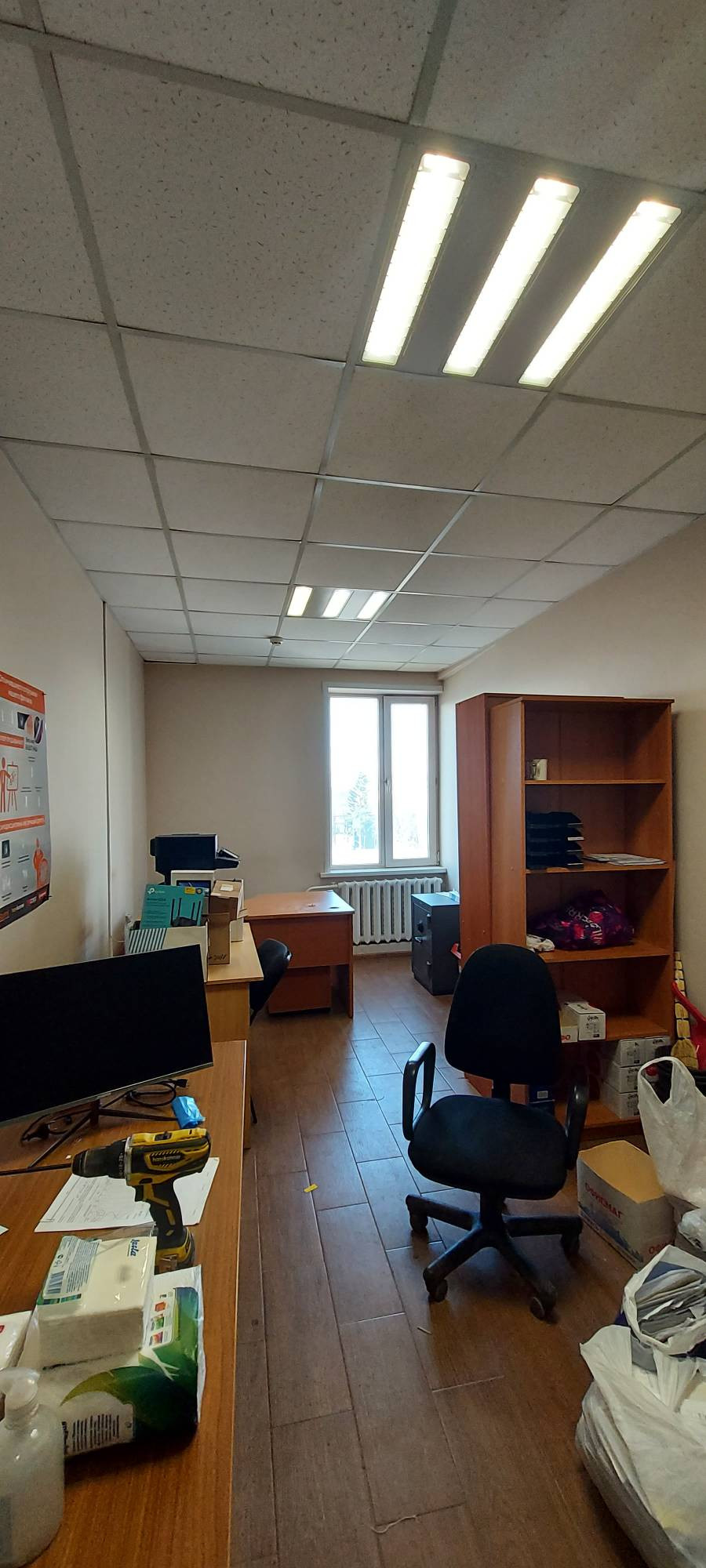 Собственник сдает в аренду офисное помещение общей площадью 109,7 кв.м. на четвертом этаже административного 4-х этажного здания. Состоит из 4-х кабинетов площадями 17,3; 18,1; 36,6 и 37,7 кв.м., расположенных в один ряд, оснащено пожарной сигнализацией, волоконно-оптической линией связи, имеет типовой офисный ремонт, возможно предоставление необходимой мебели (столы, шкафы). Здание расположено на промышленной территории, парковочные места на прилегающей территории, доступ свободный. Собственник – юр. лицо, без НДС. Цена 38 500 рублей, коммунальные платежи входят в стоимость арендной ставки, в том числе эл. энергия.