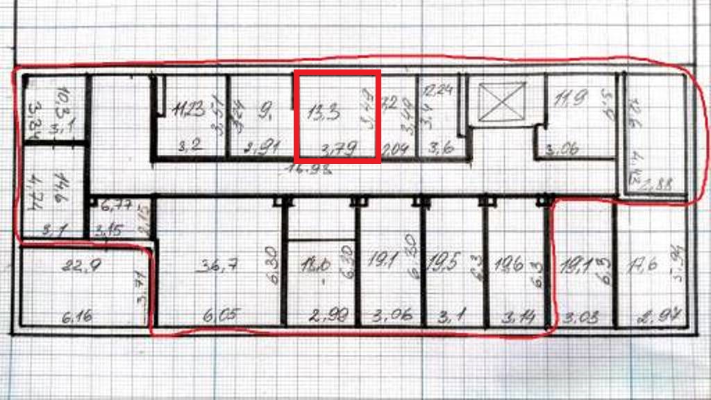 Общая площадь 13.3 м2