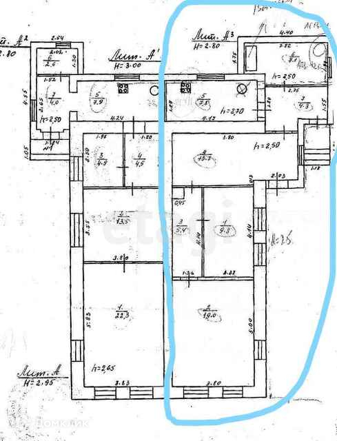 В доме 3 комнаты: 19, 9,8 и 13,7 кв. м., кухня 7,8 кв. м., санузел и котельная 7,1.