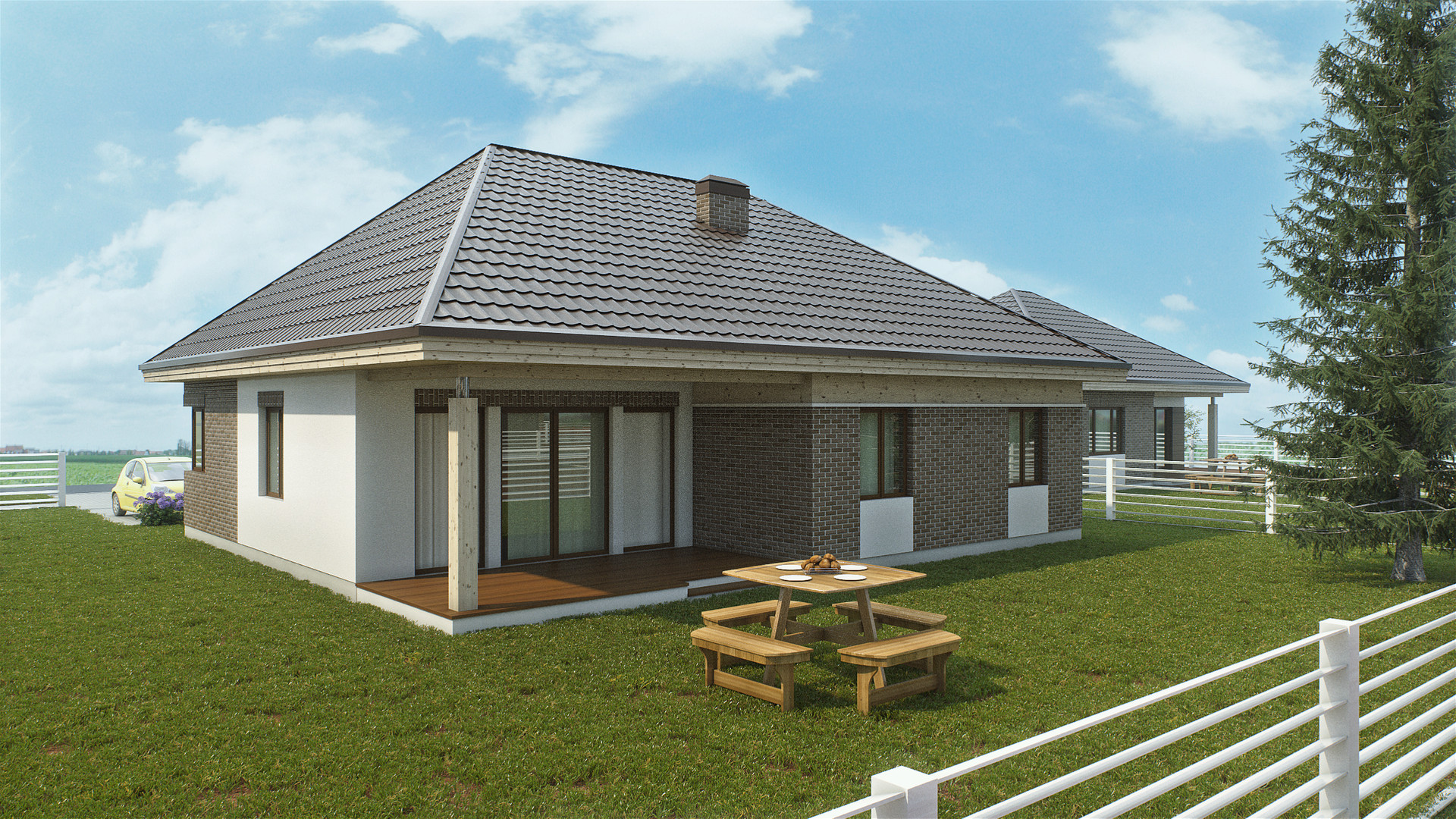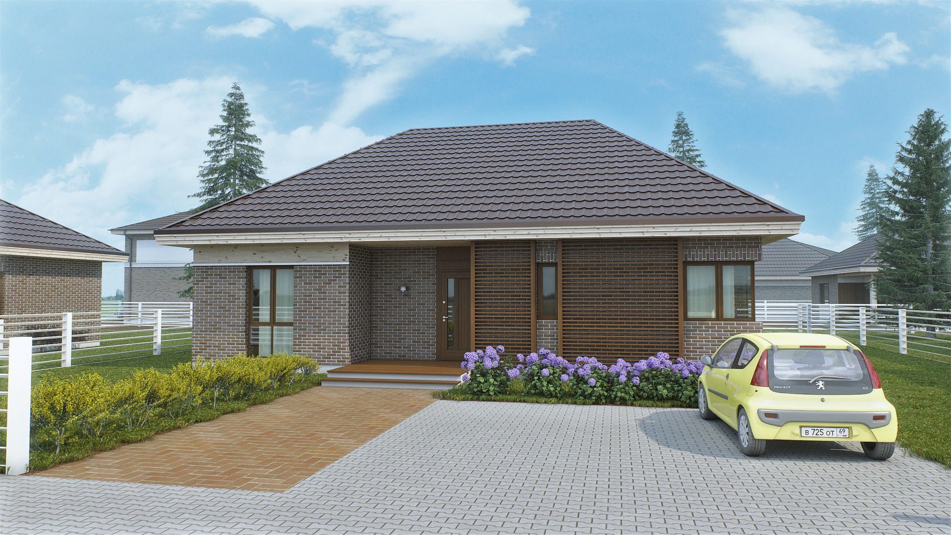 Сам дом построен из пеноблоков и отделан клинкерной плиткой с текстурой под кирпич и фасадной доской, таким образом дом имеет очень благородный вид!