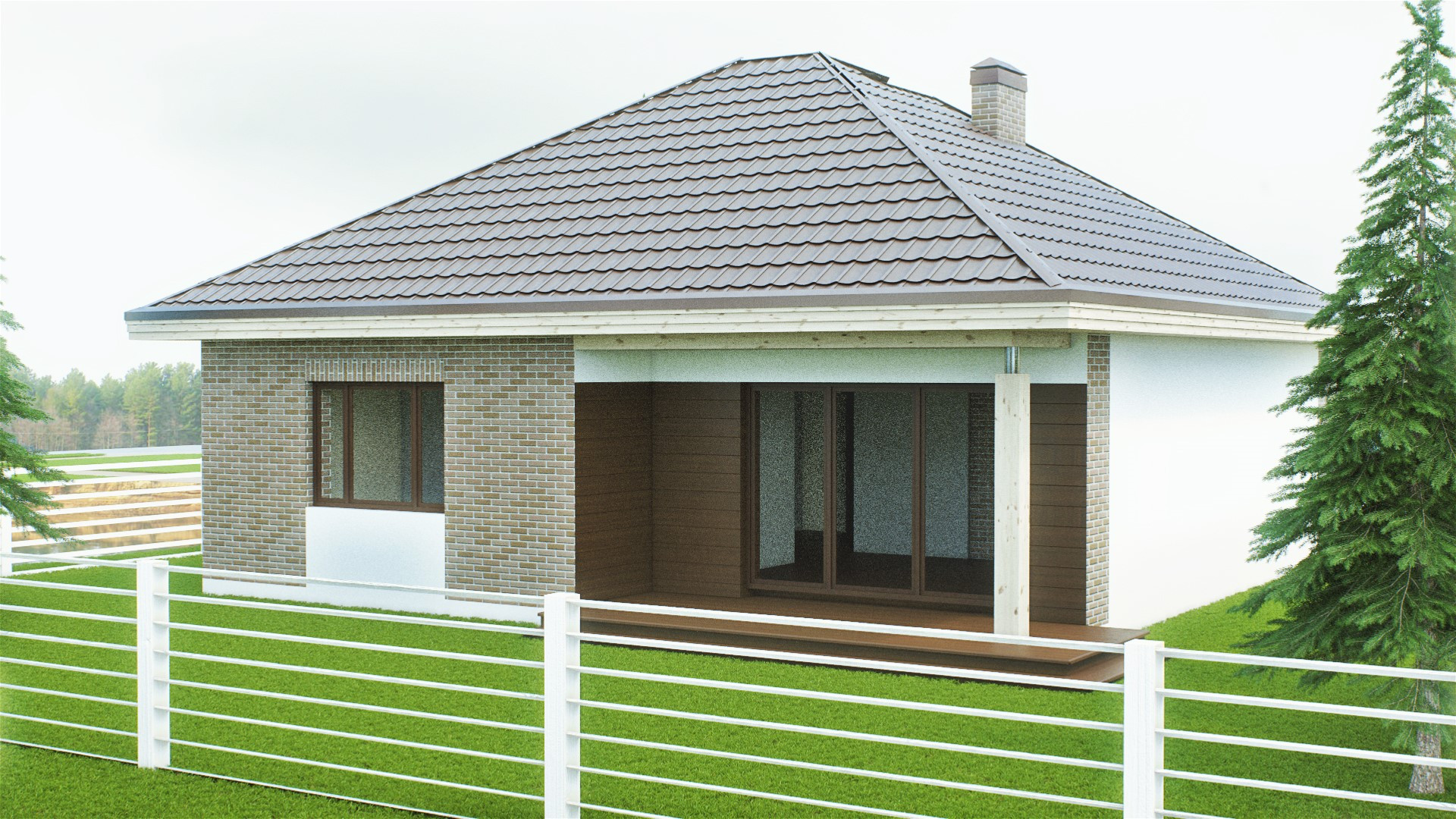 Дом состоит из крыльца, прихожей, двух полноценных спален, большой кухни-гостинной, санузла и котельной, а также террасы для приятных вечеров за чашечкой чая.
