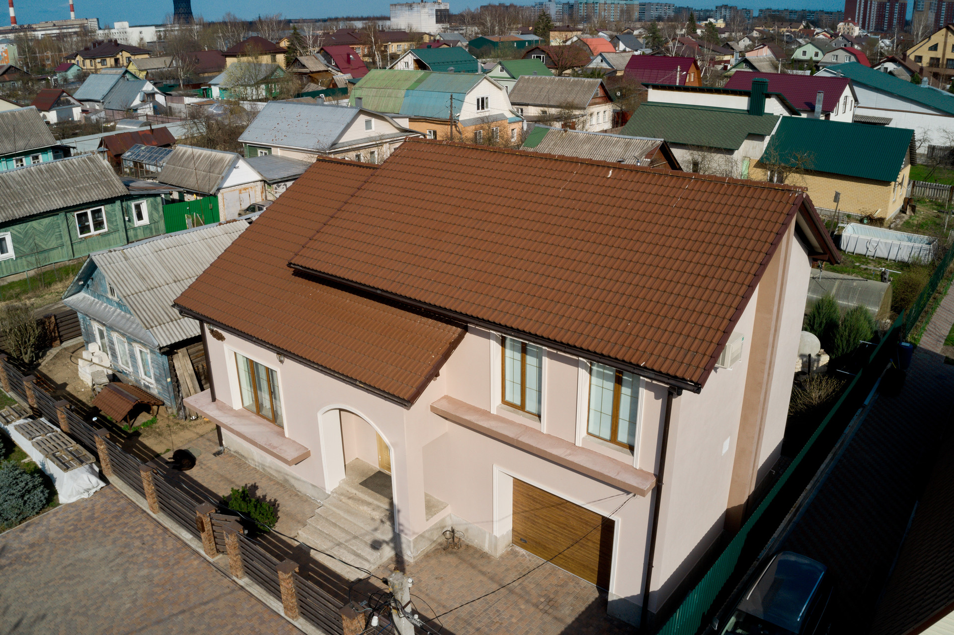 Крыша покрыта керамической глазированной черепицей BRAAS, Германия.