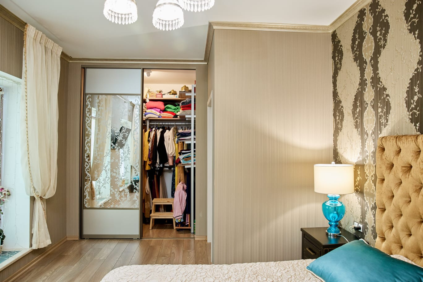 Система хранения, оснащение в гардеробных комнатах и шторы также остаются новым владельцам
