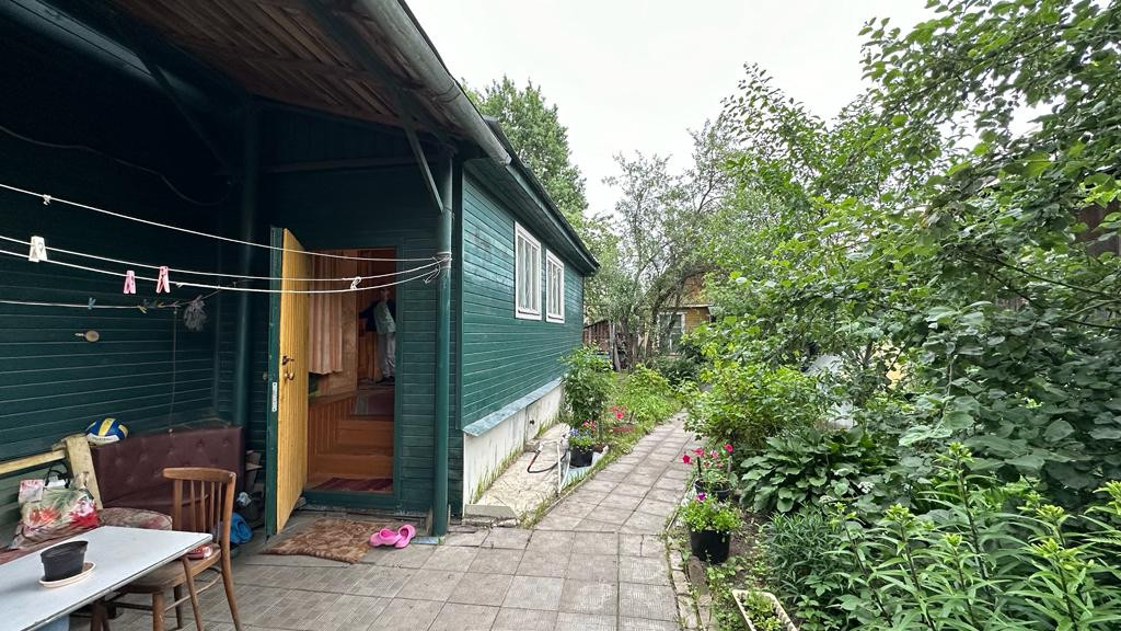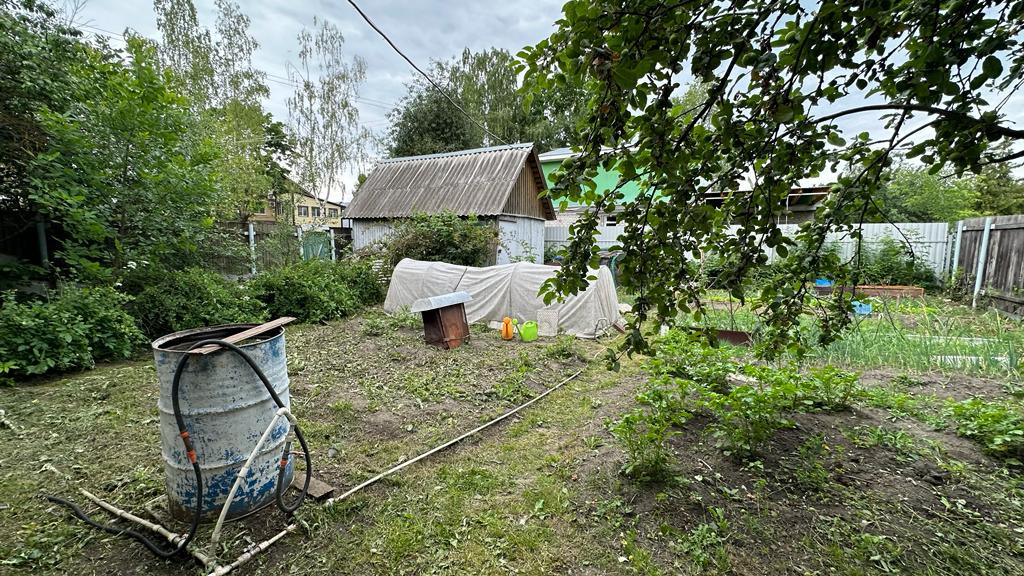 На участке баня, сарай и гараж. Часть участка распахана под огород, другая- сад и место отдыха.