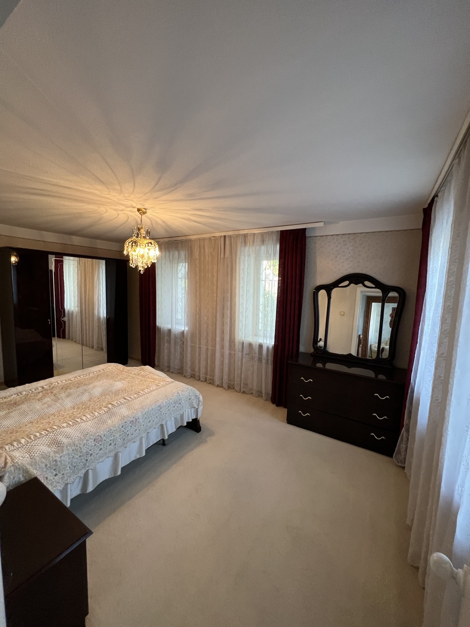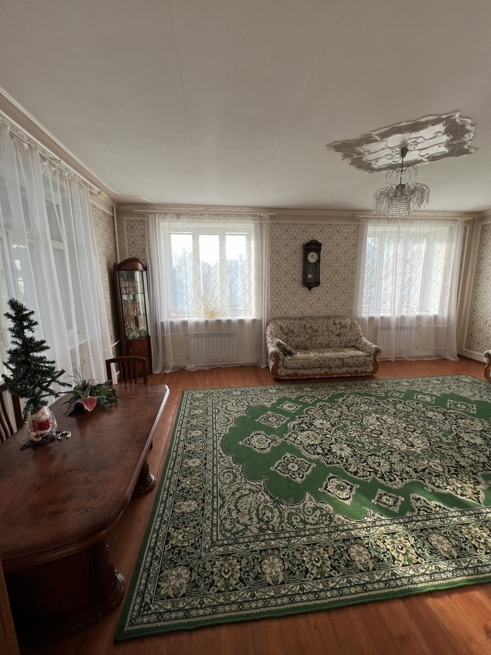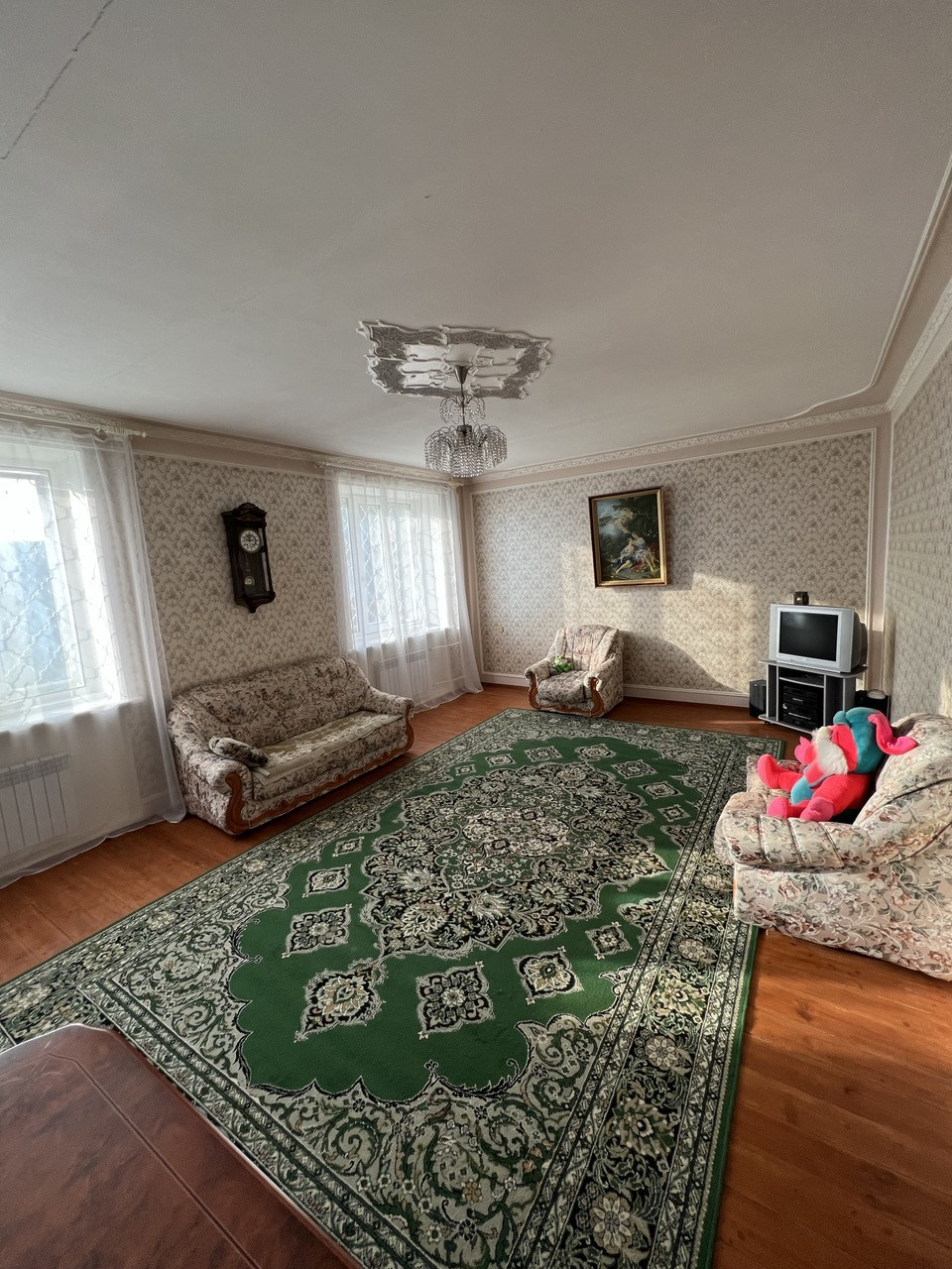 Дом: 1997 года постройки, капитальный фундамент, стены в 2,5 кирпича, оштукатурен и покрашен. В доме кухня, огромная гостиная, семь комнат (спальни), в подвале (2 метра в высоту) котельная плюс 4 комнаты. Двери и лестница из натурального дерева. В гостиной по проекту подготовлено место под камин.Окна ПВХ. Охранная система. Два теплых гаража. Система очистки воды.
