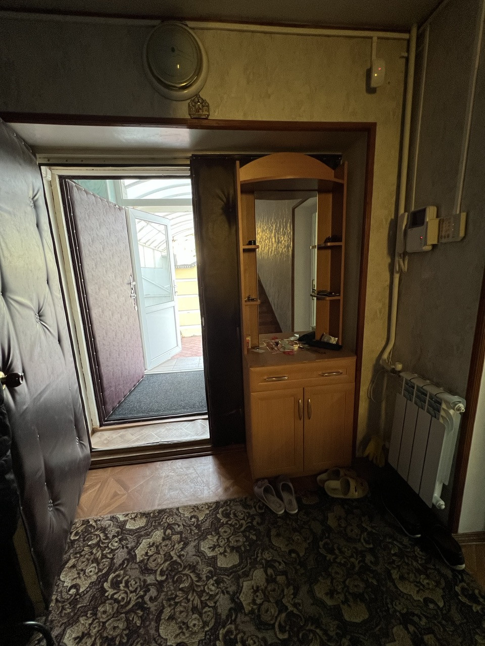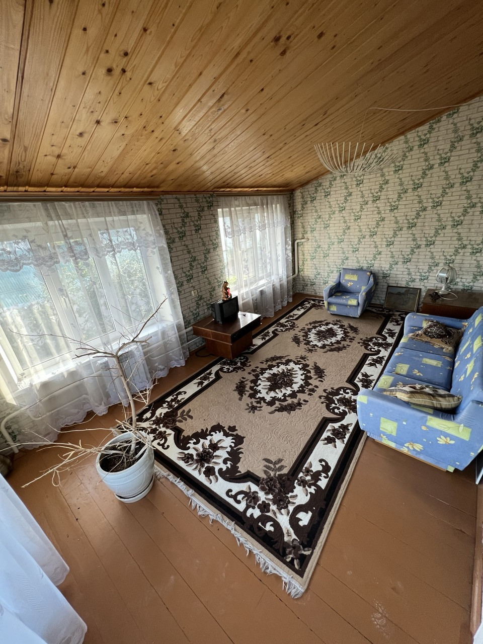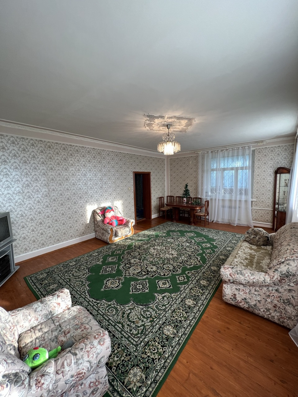 Дом: 1997 года постройки, капитальный фундамент, стены в 2,5 кирпича, оштукатурен и покрашен. В доме кухня, огромная гостиная, семь комнат (спальни), в подвале (2 метра в высоту) котельная плюс 4 комнаты. Двери и лестница из натурального дерева. В гостиной по проекту подготовлено место под камин.Окна ПВХ. Охранная система. Два теплых гаража. Система очистки воды.