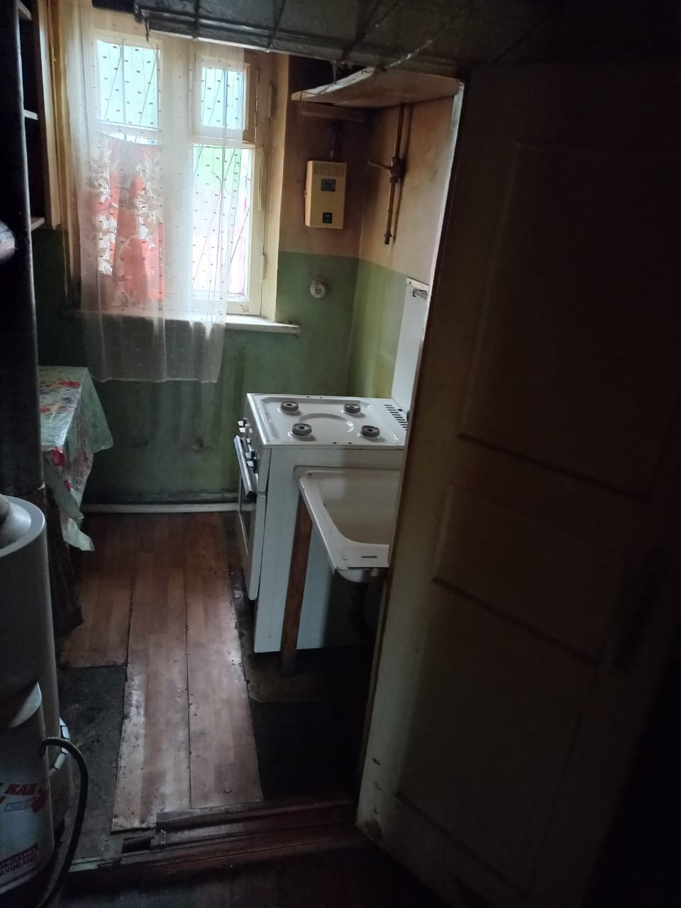 - Общая площадь – 36,4 кв.м., 2 комнаты 14,4 (+кладовая 0,8 кв.м.) +6,4 кв.м., кухня 3,2 кв.м. Состояние - требует ремонта.