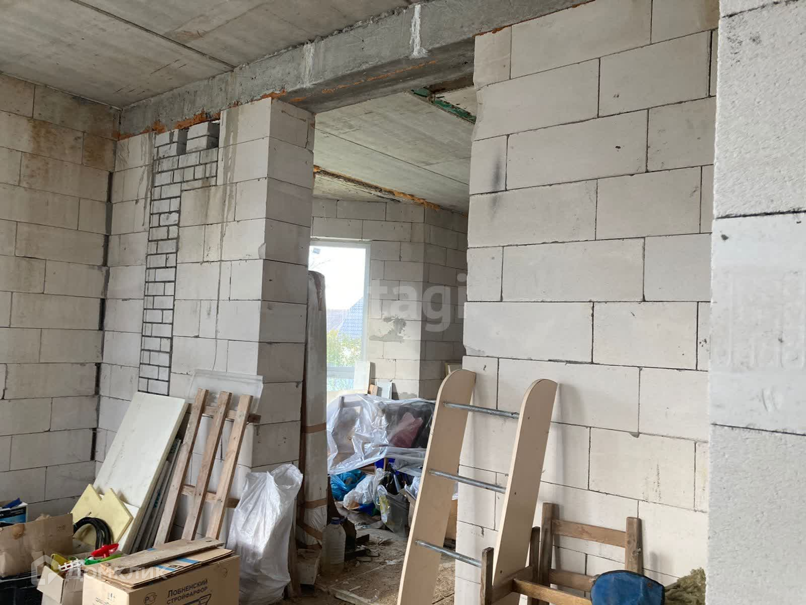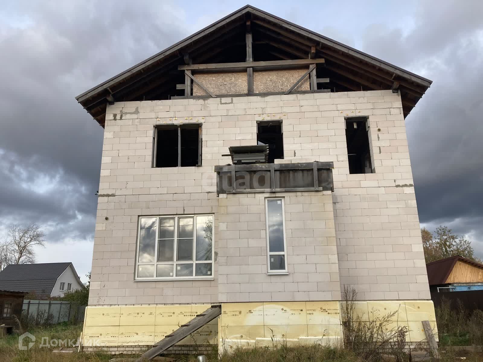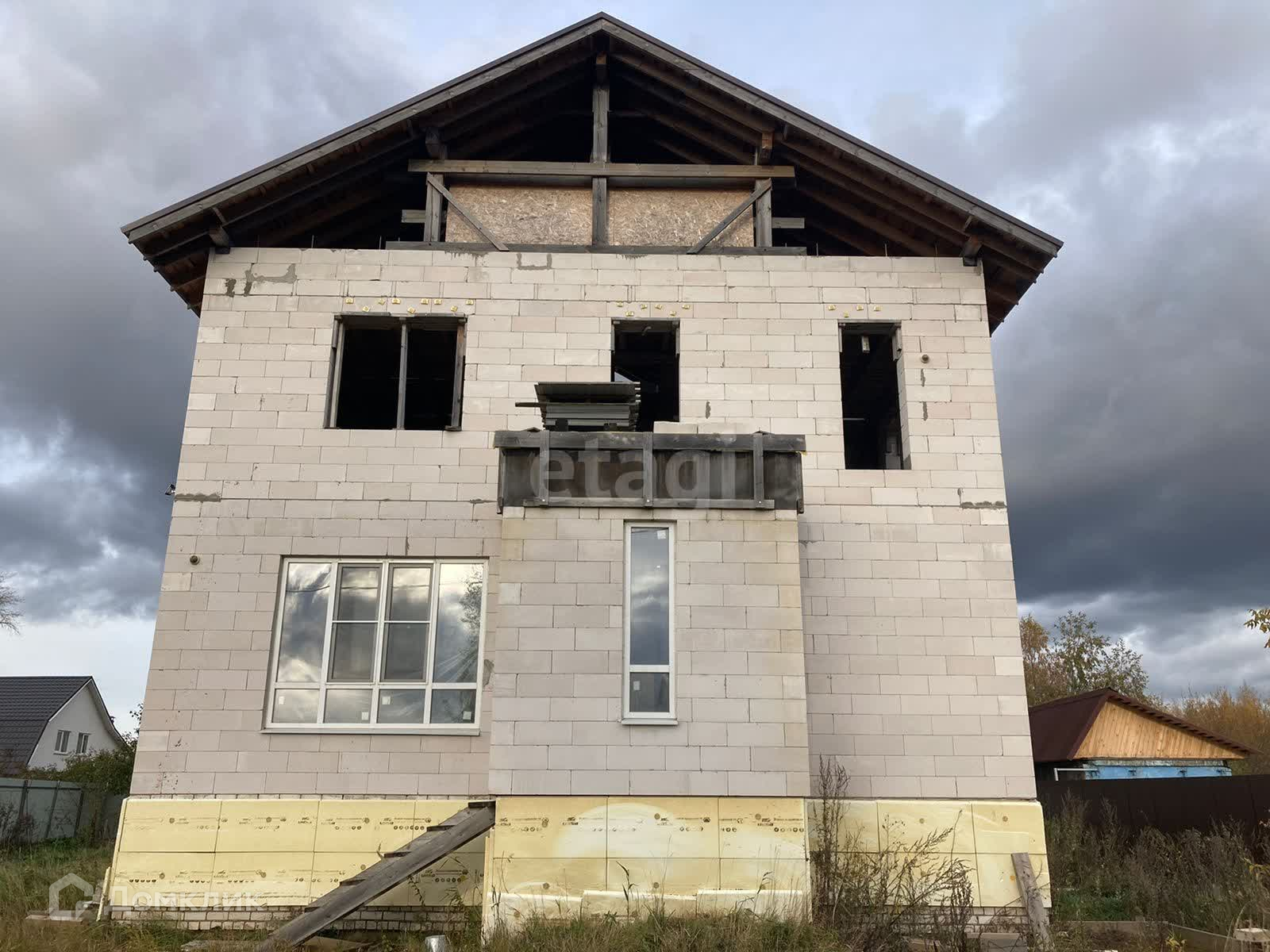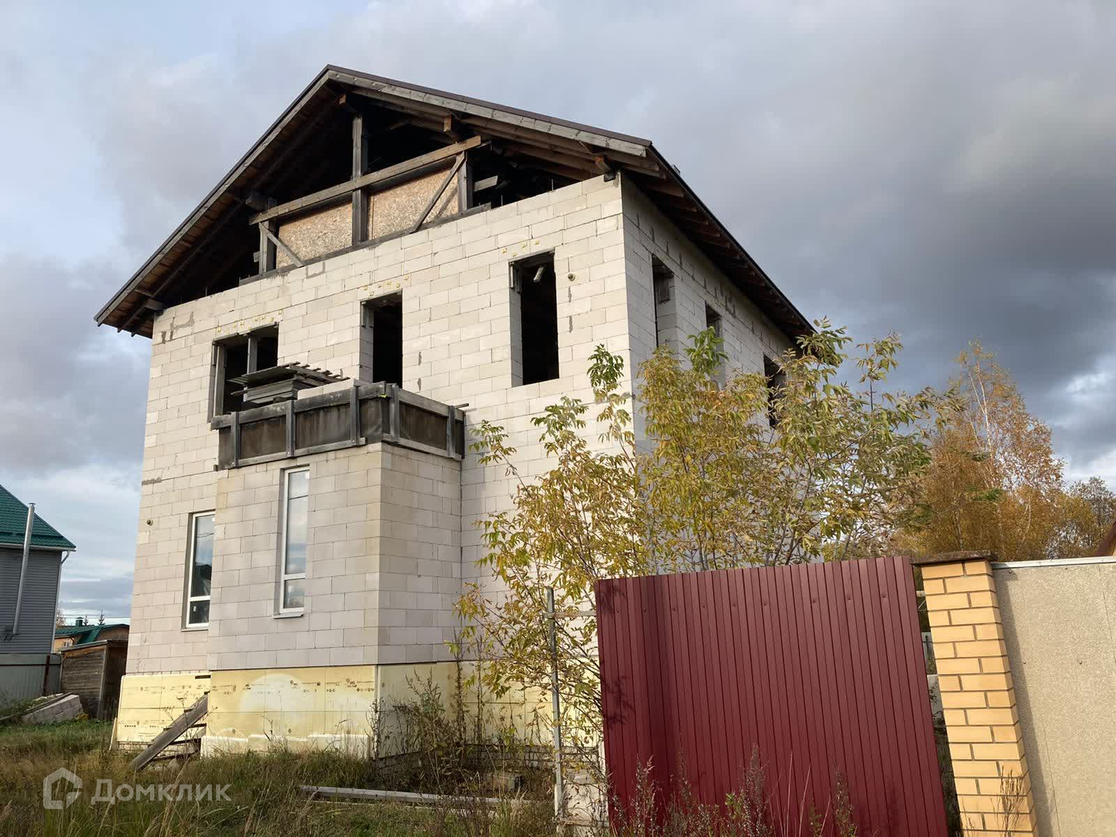 Дом недостроен, но большая часть работы выполнена. Частично остались стройматериалы для завершения строительства. Первый этаж полностью остеклен, окна на второй этаж куплены, но не установлены. Проект дома имеется. По проекту – дом просторный и очень светлый.