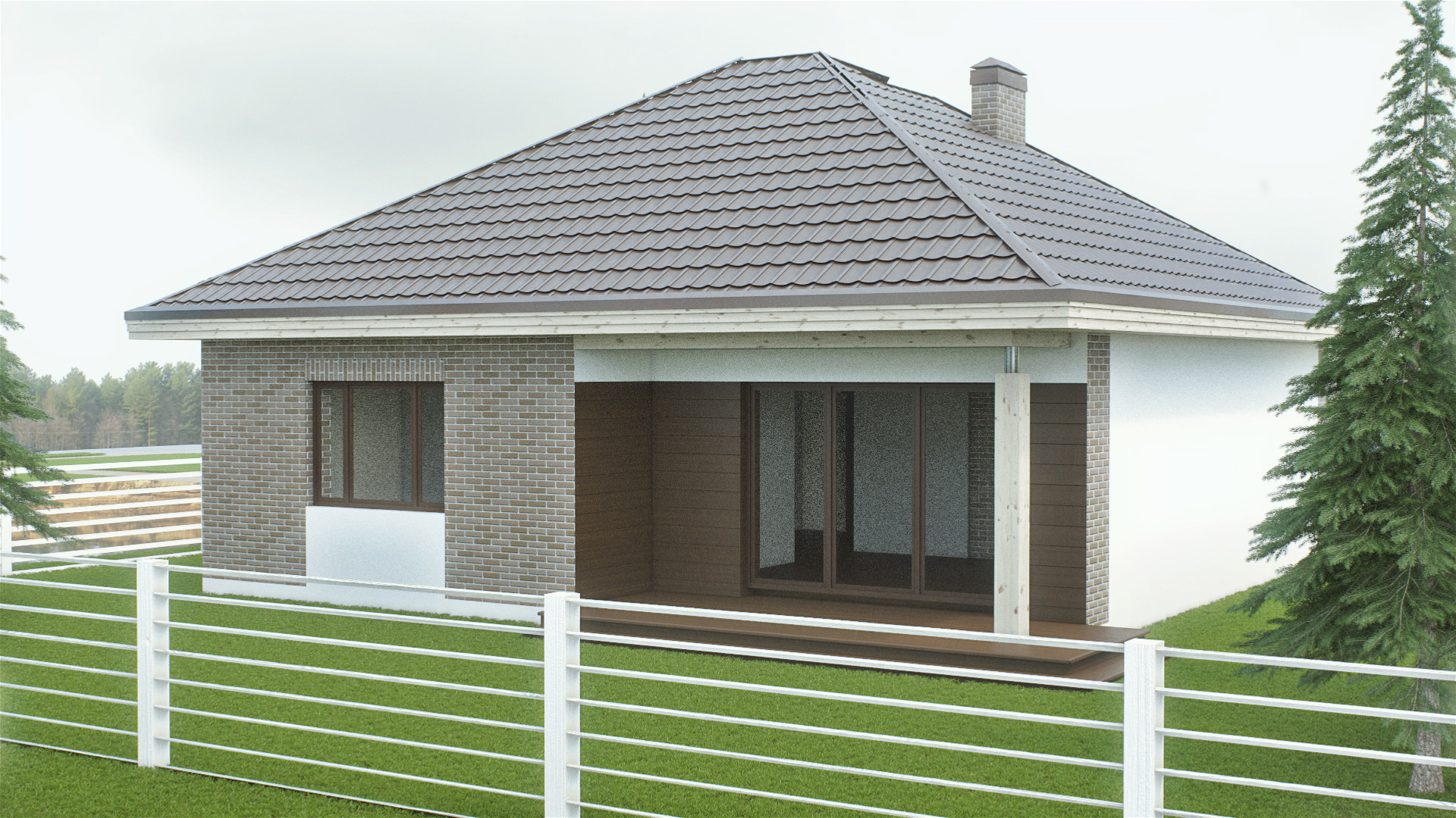 Дом состоит из крыльца, прихожей, двух полноценных спален, большой кухни-гостинной, санузла и котельной, а также террасы для приятных вечеров за чашечкой чая.