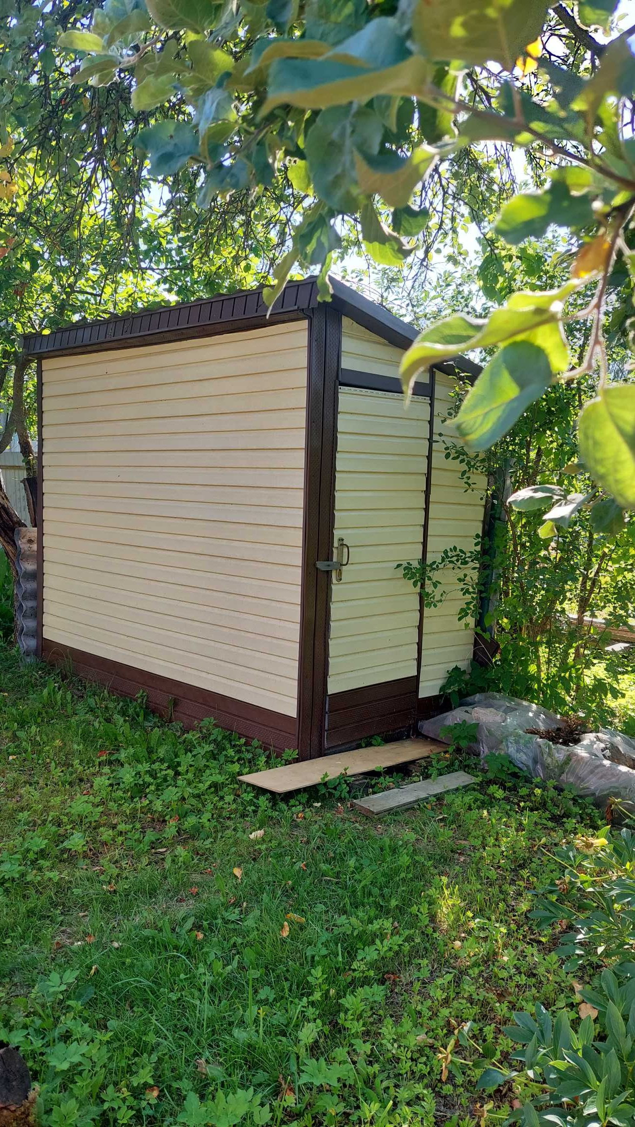 Сарай обшит сайдингом.
