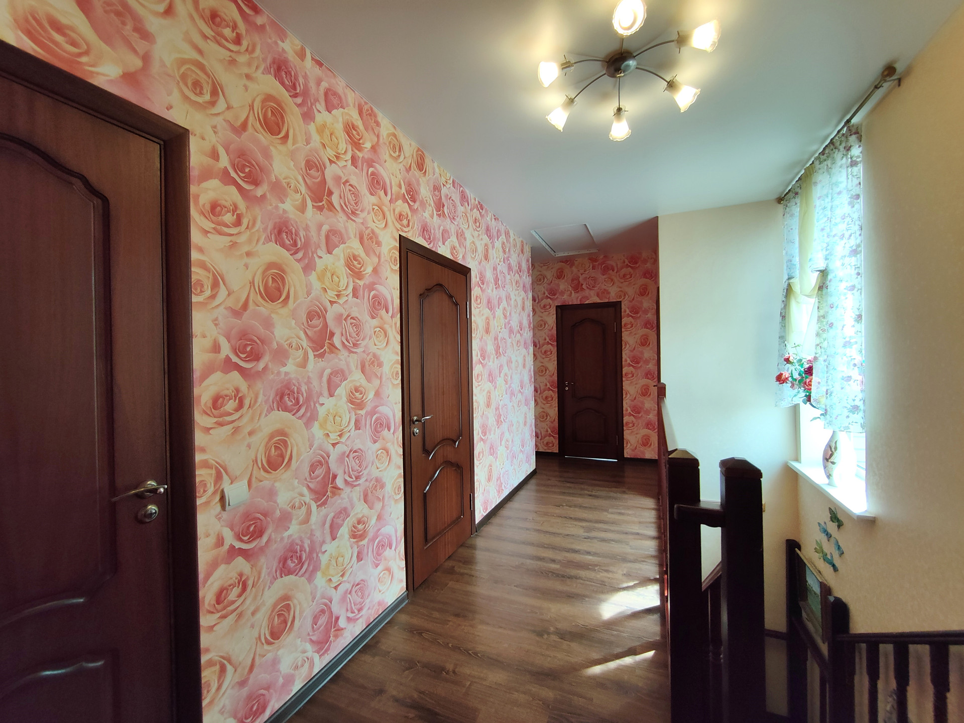 В доме выполнена качественная отделка, все окна ПВХ, натяжные потолки, на первом этаже теплый пол(покрытие - кафель), на втором этаже пол - ламинат, установлен двухконтурный газовый котел(индивидуальное отопление).