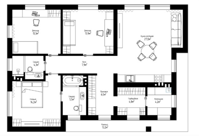 Это полноценная замена трехкомнатной квартиры! Только без соседей за стенкой, со своим участком и личным парковочным местом.