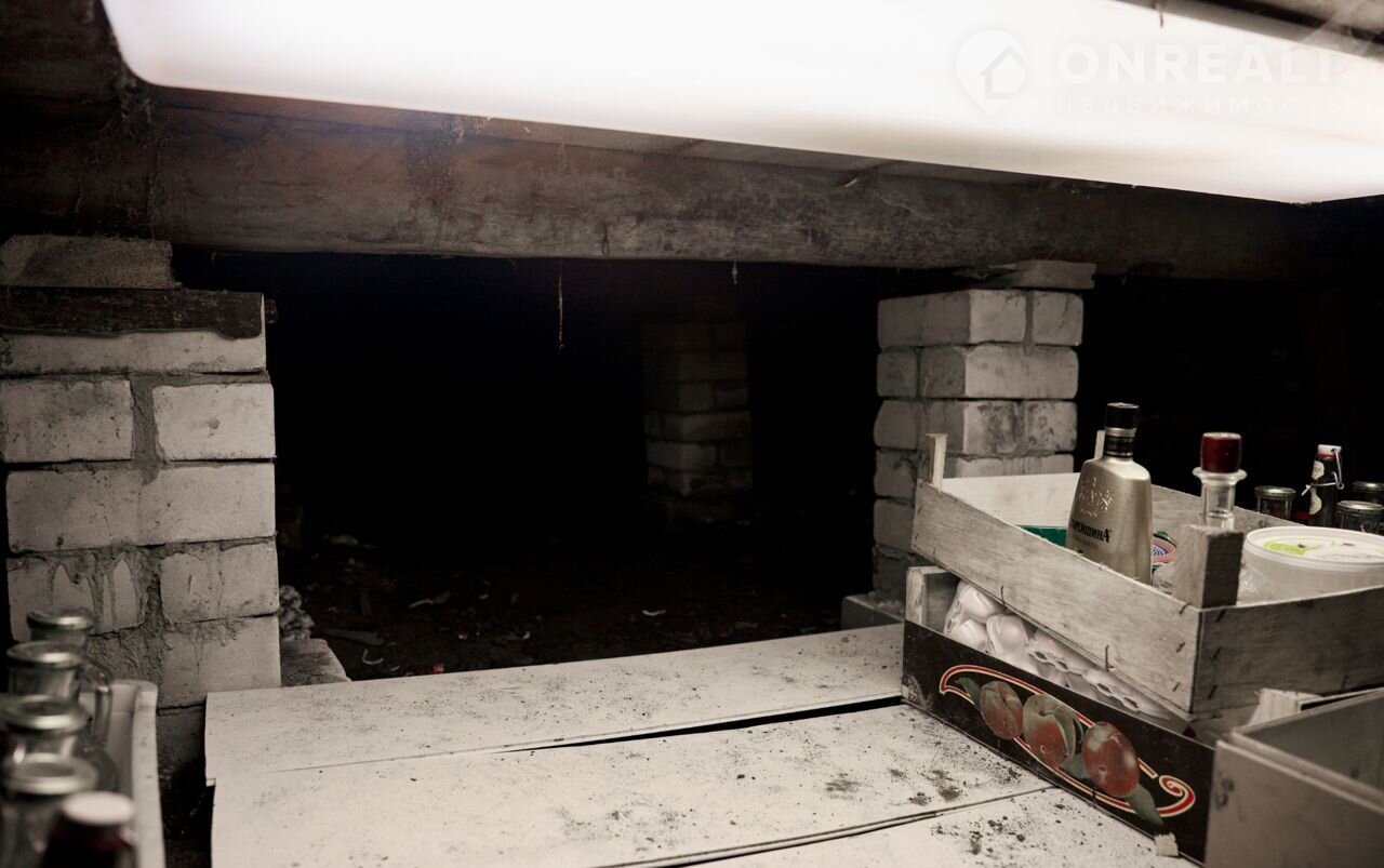 Есть сухой подпол высотой 0,8 м.